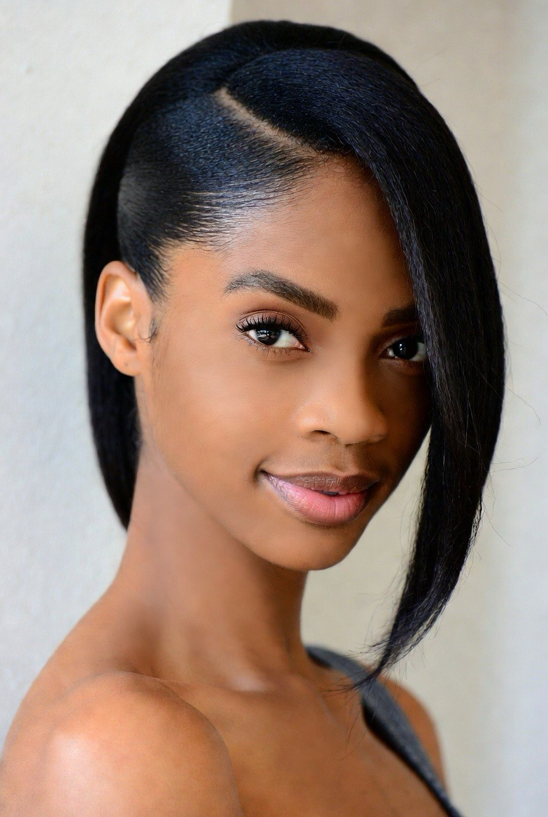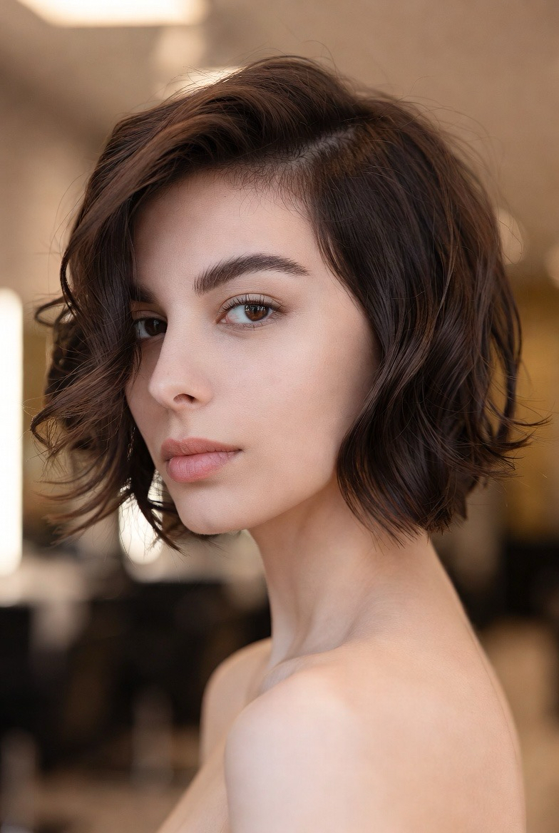 Side bangs soften the look while maintaining structure. Ideal for face-framing elegance.