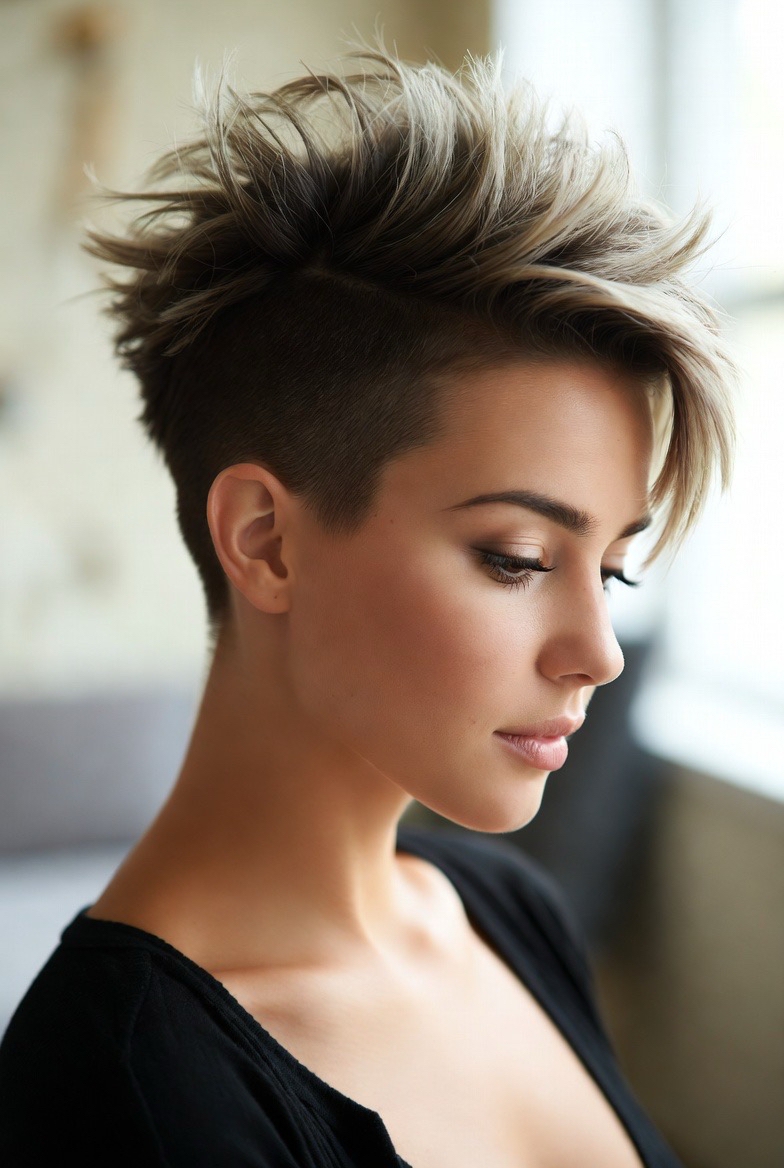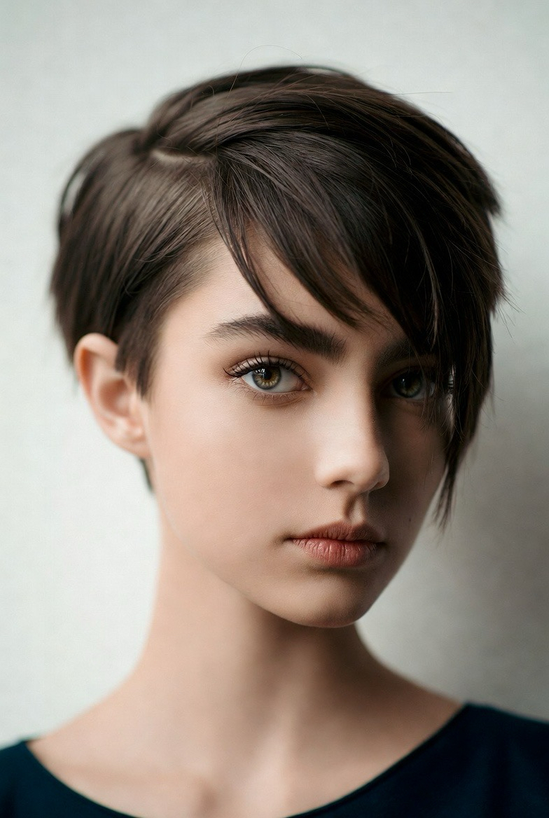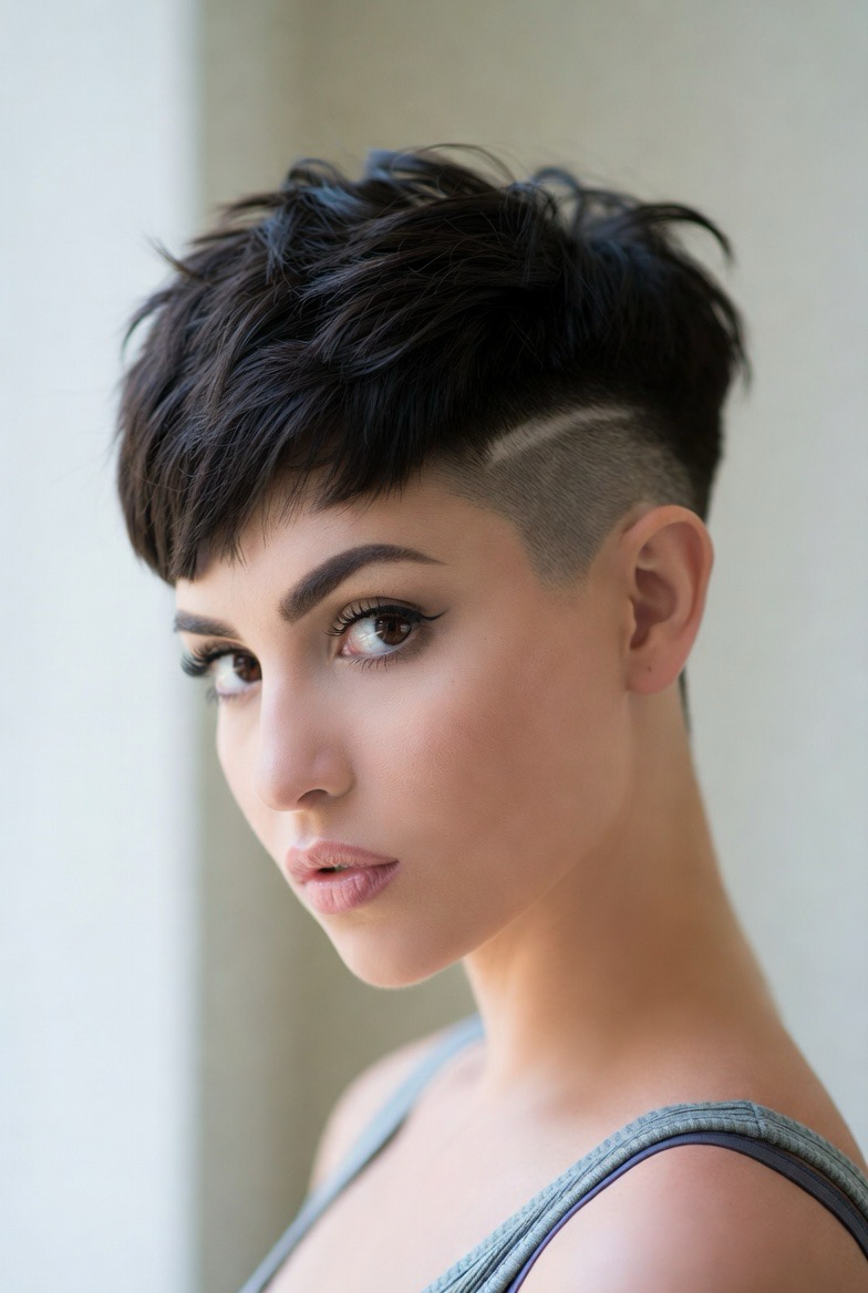 An undercut pixie delivers maximum attitude. Shaved or closely cropped sides contrast beautifully with longer top layers. This haircut is fearless, modern, and perfect for making a statement.