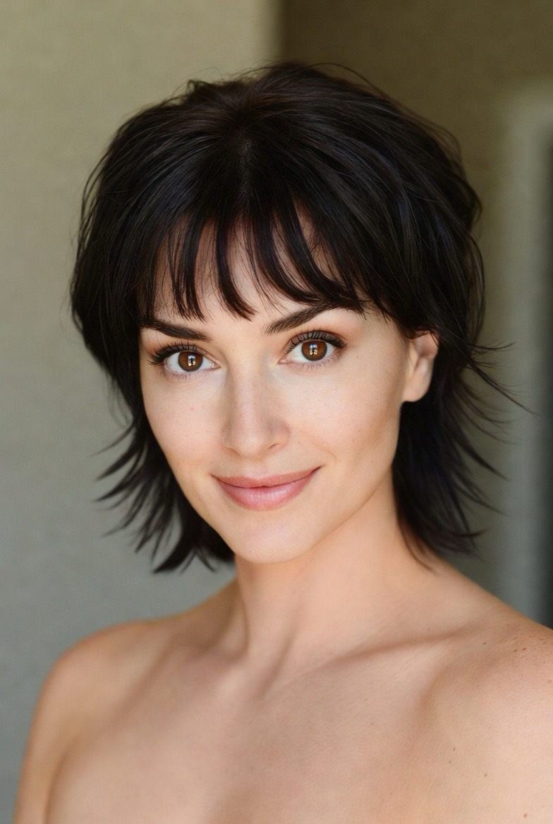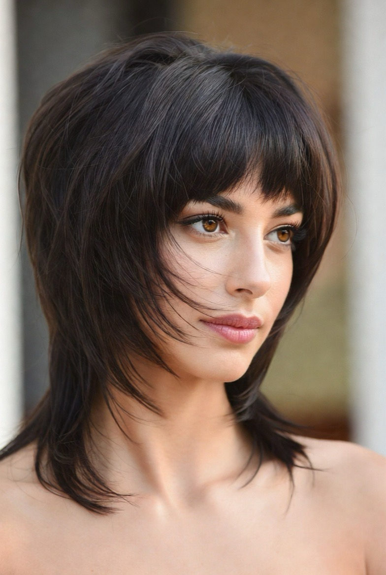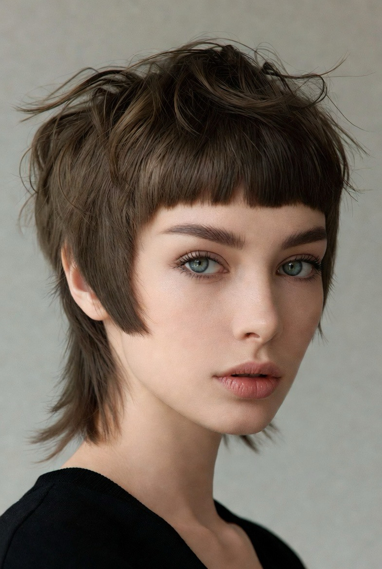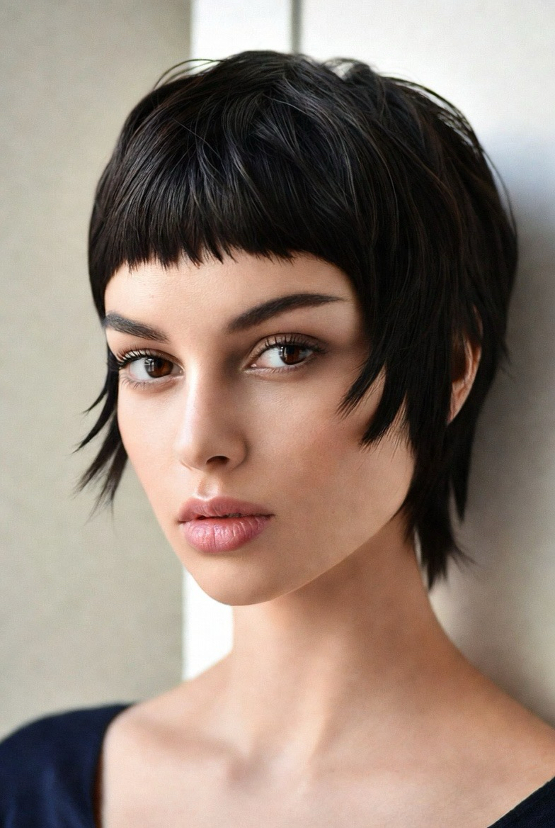 Short bangs add personality and trend appeal. This look is bold, quirky, and perfect for creative fashion lovers.