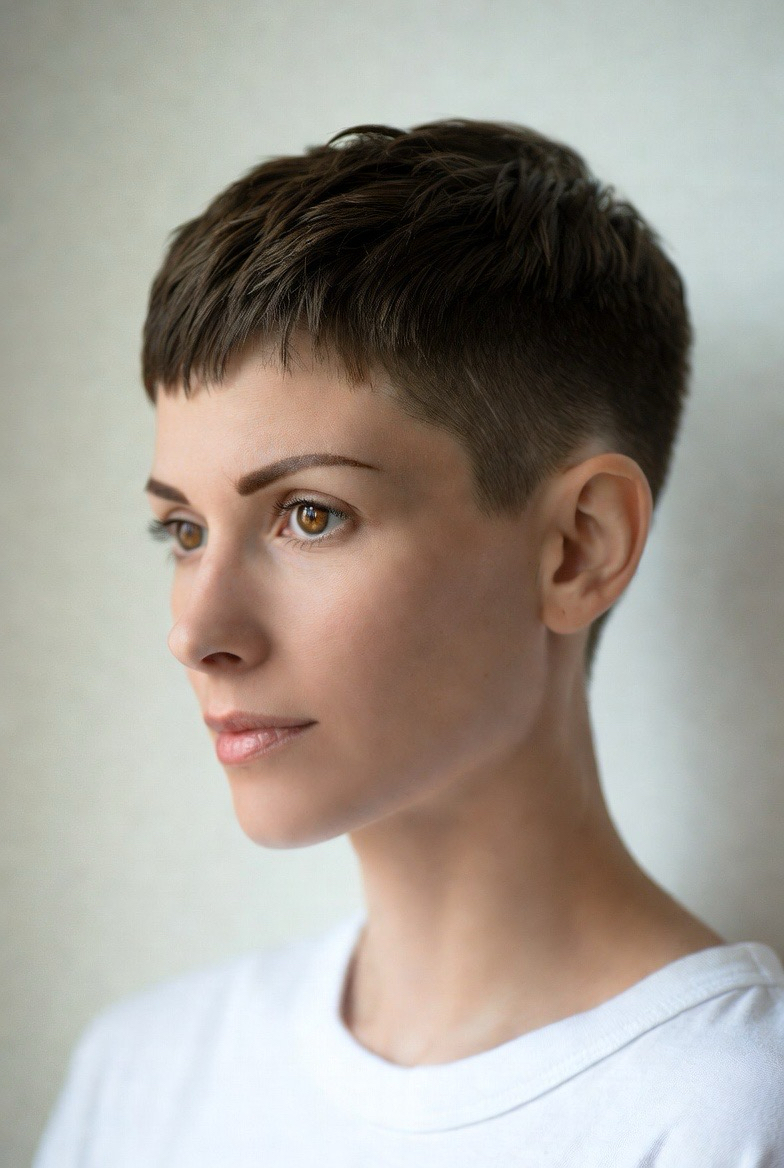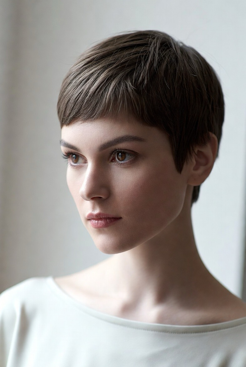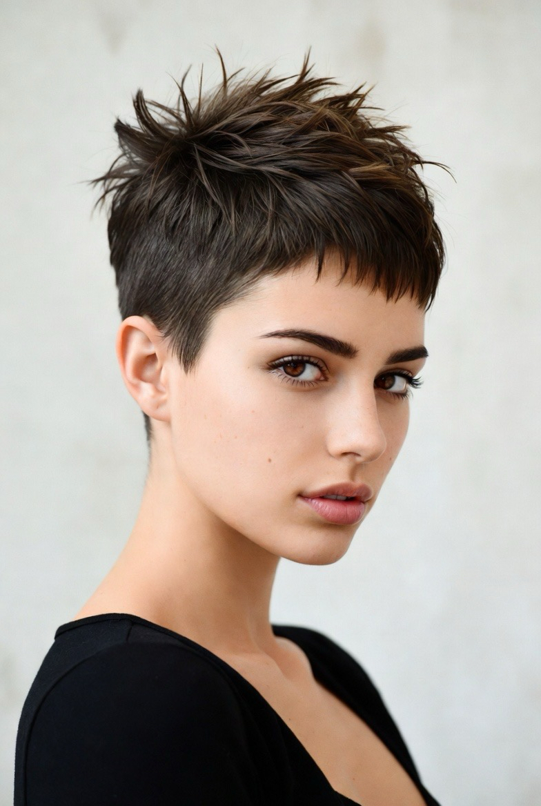 Ultra-short and daring, this pixie is all about fearless style and modern appeal.