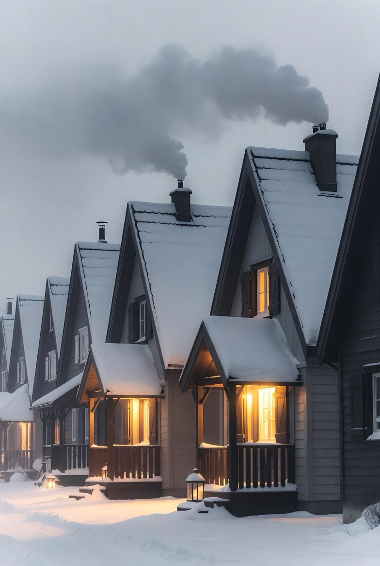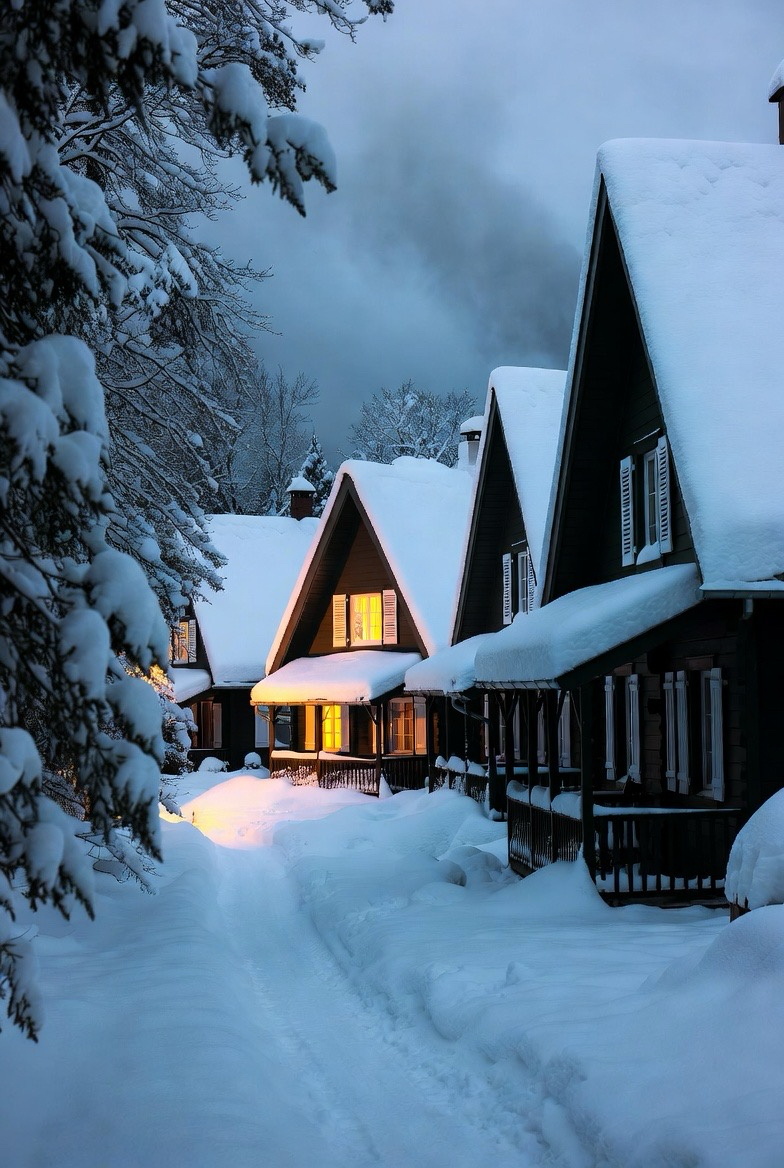 Bungalows feel intimate and inviting during winter. Their low profiles and warm lighting create a snug, welcoming atmosphere.