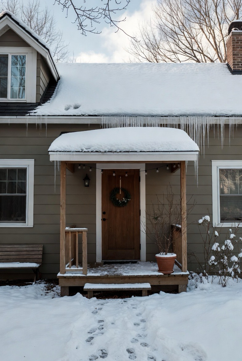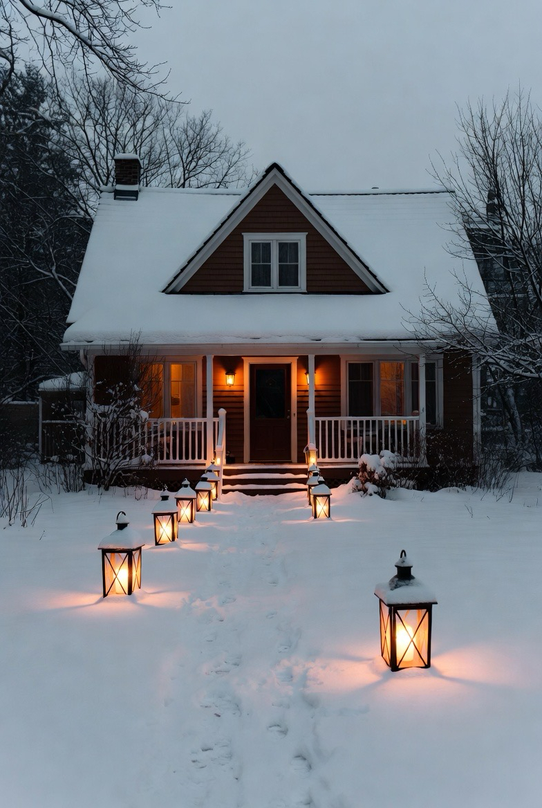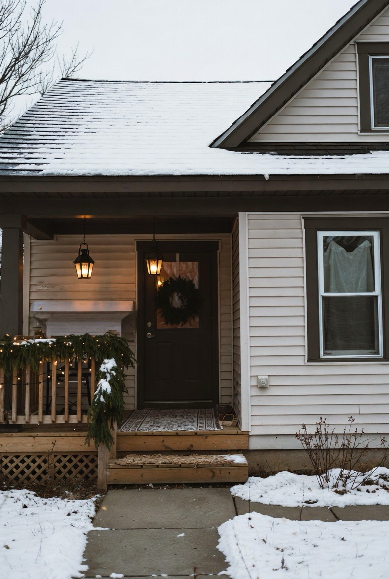 Warm entryway lighting is essential in winter. Wall sconces and lanterns create a safe, inviting glow during long evenings.