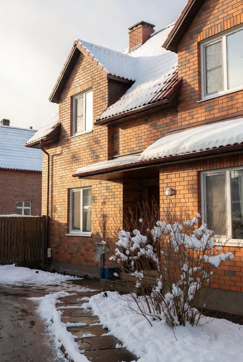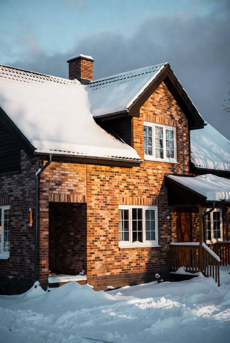 Brick exteriors feel especially inviting in winter. The rich tones pair beautifully with snow, while soft outdoor lighting highlights texture and warmth.
