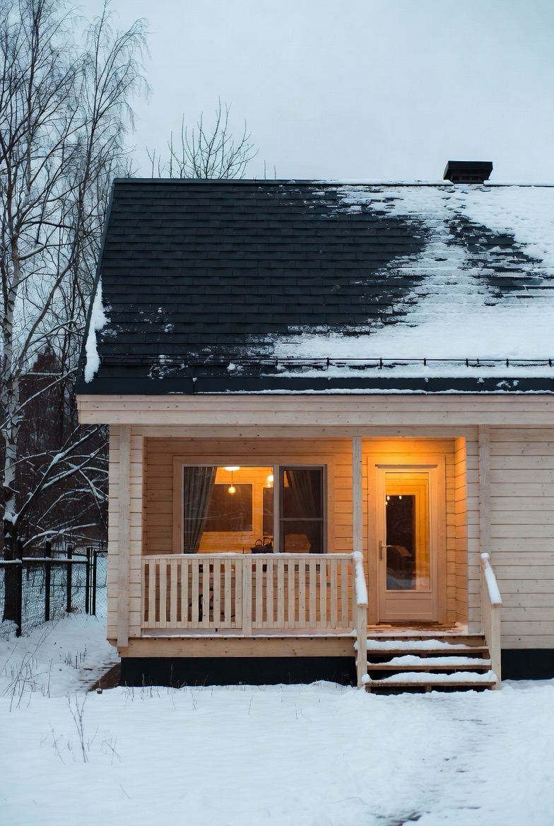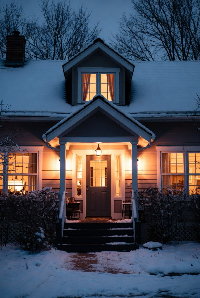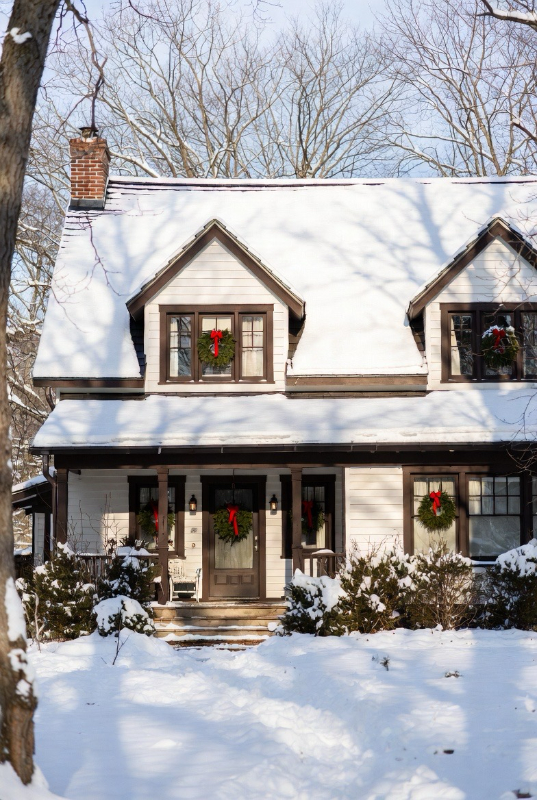 Cottage homes shine in winter with their compact shape and charming details. Snow-covered roofs, shuttered windows, and warm porch lights create a fairytale-like feel that’s perfect for the season.