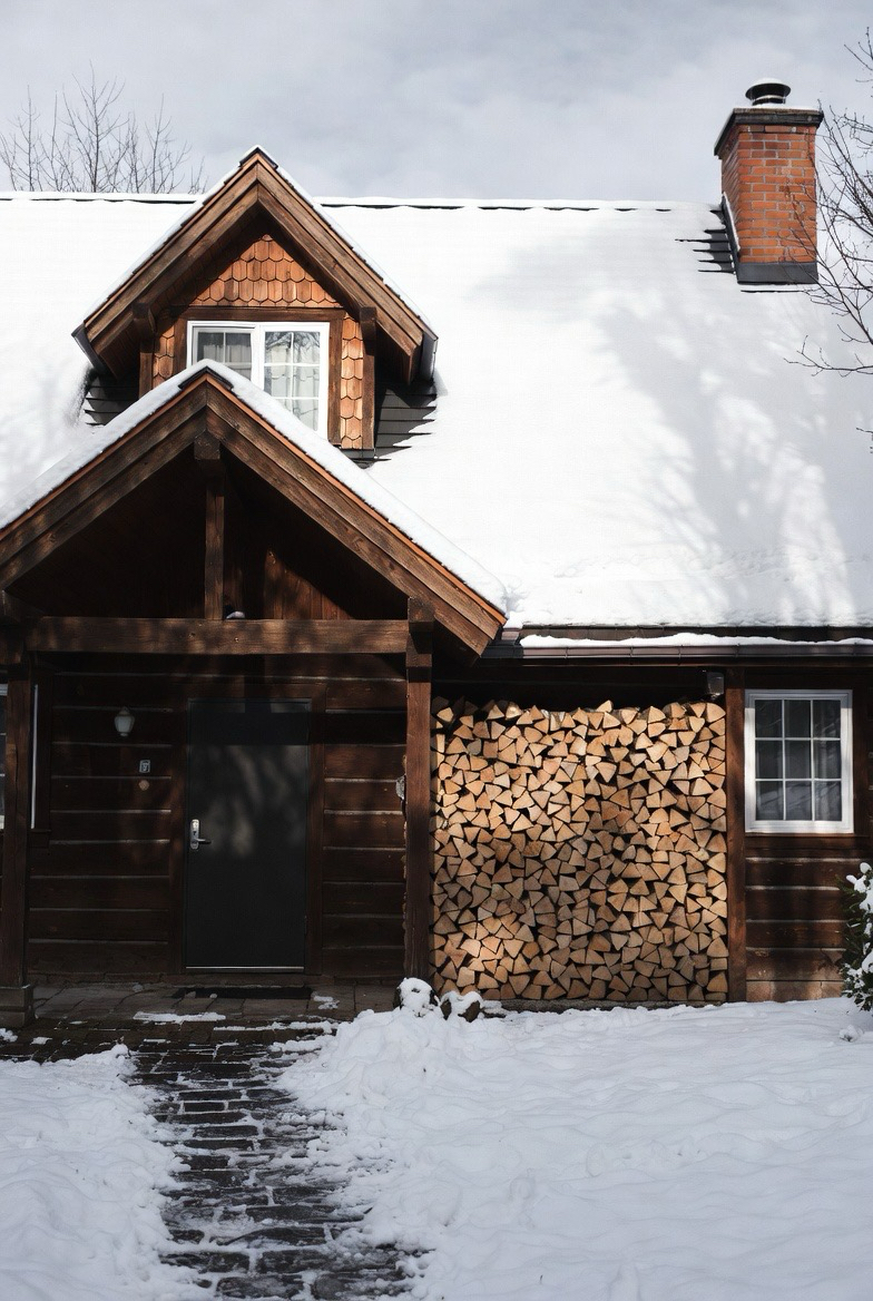 Visible firewood storage adds rustic charm while signaling warmth. It’s both practical and visually appealing in winter settings.
