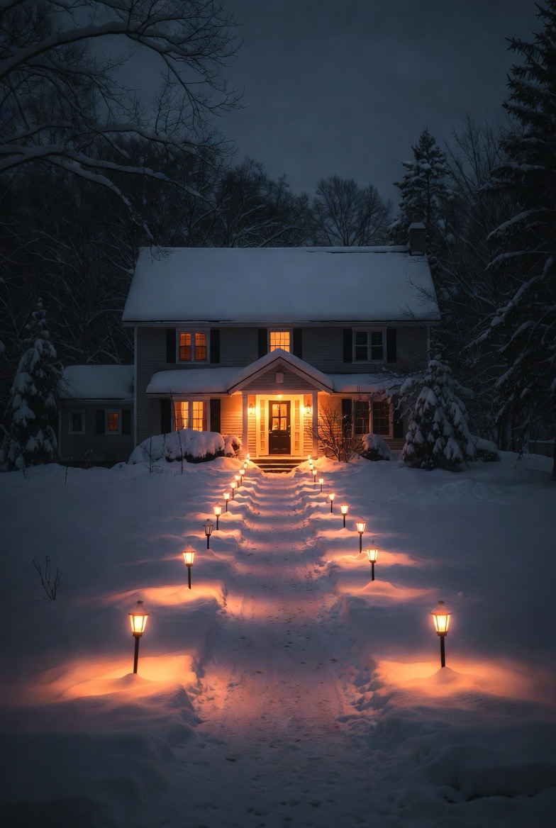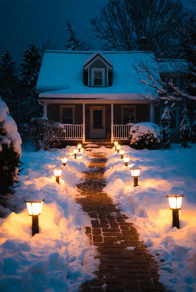 Pathway lights guide guests safely while adding visual charm. They create a glowing trail through snow-covered yards.