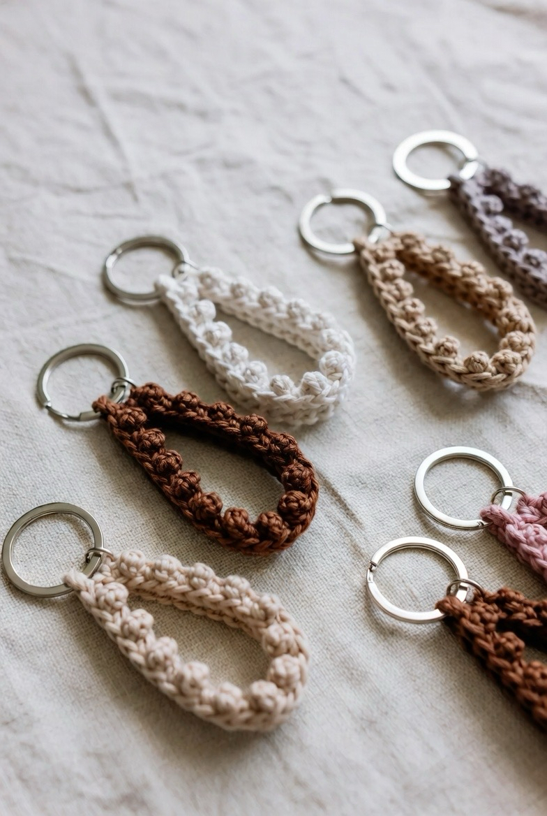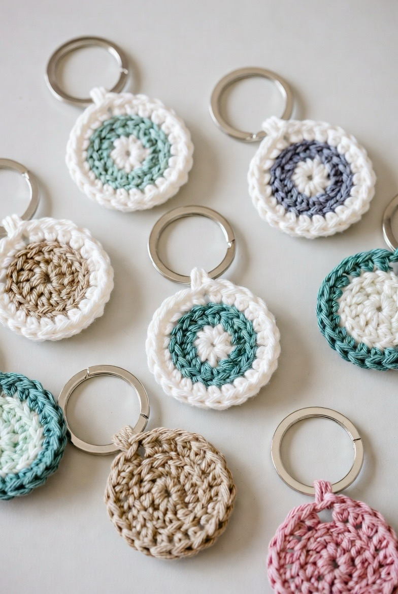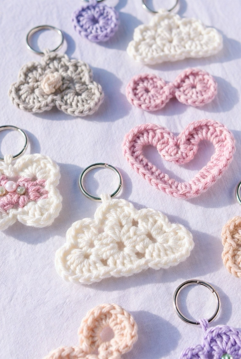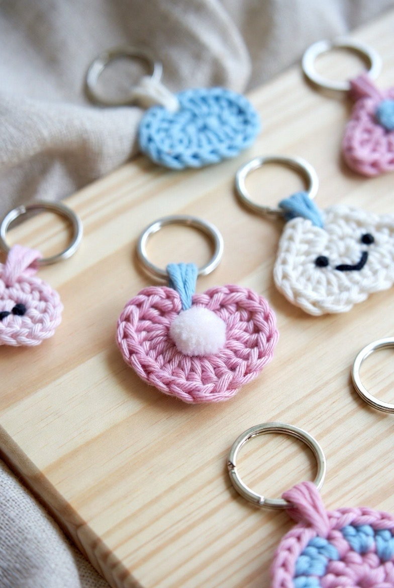 This timeless heart design is simple, beginner-friendly, and perfect for gifts. Use cotton yarn for durability and add a sturdy keyring for daily use.