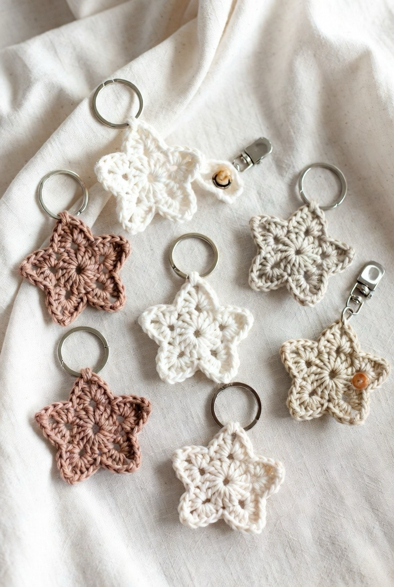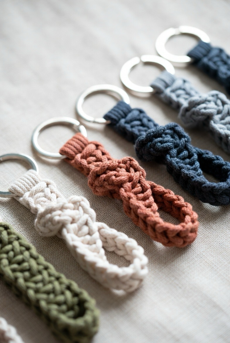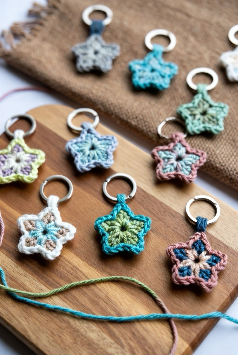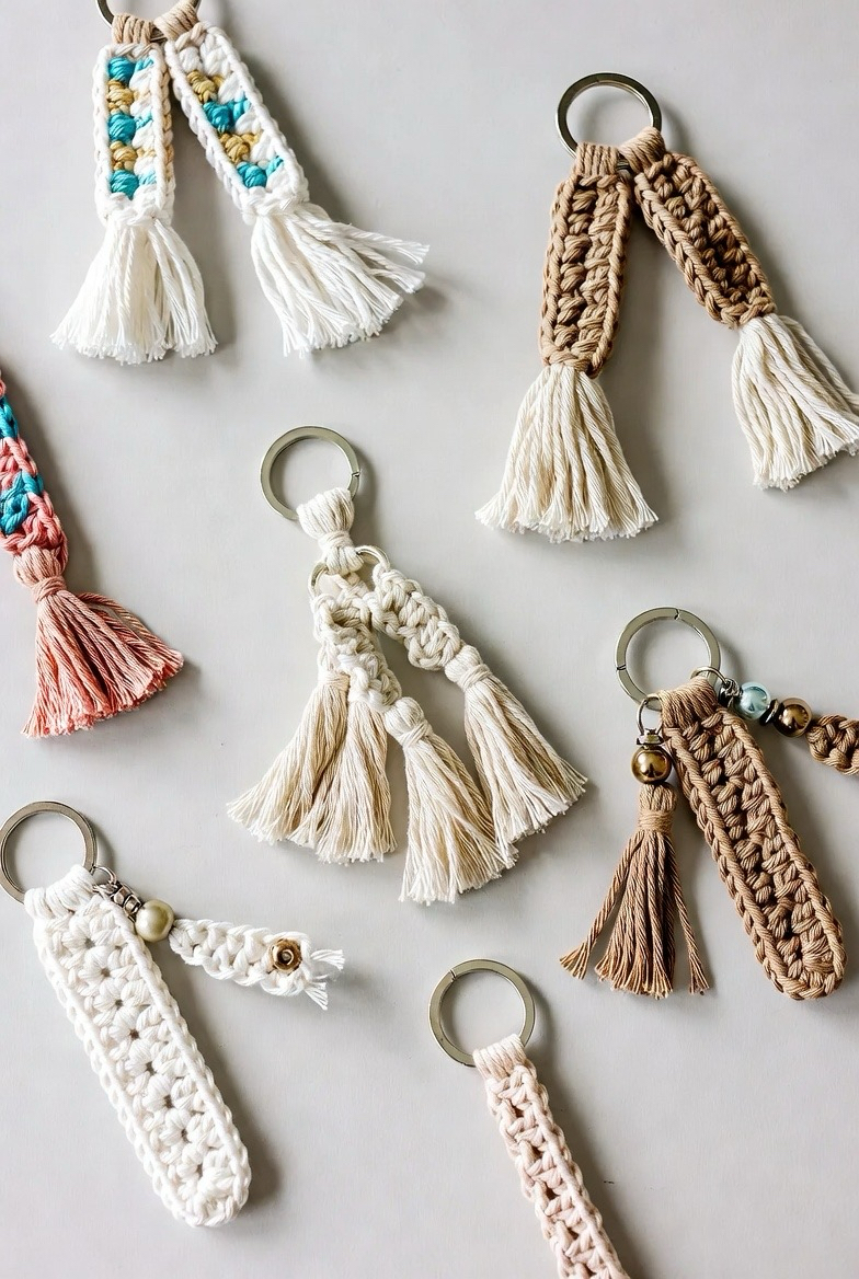 This timeless heart design is simple, beginner-friendly, and perfect for gifts. Use cotton yarn for durability and add a sturdy keyring for daily use.