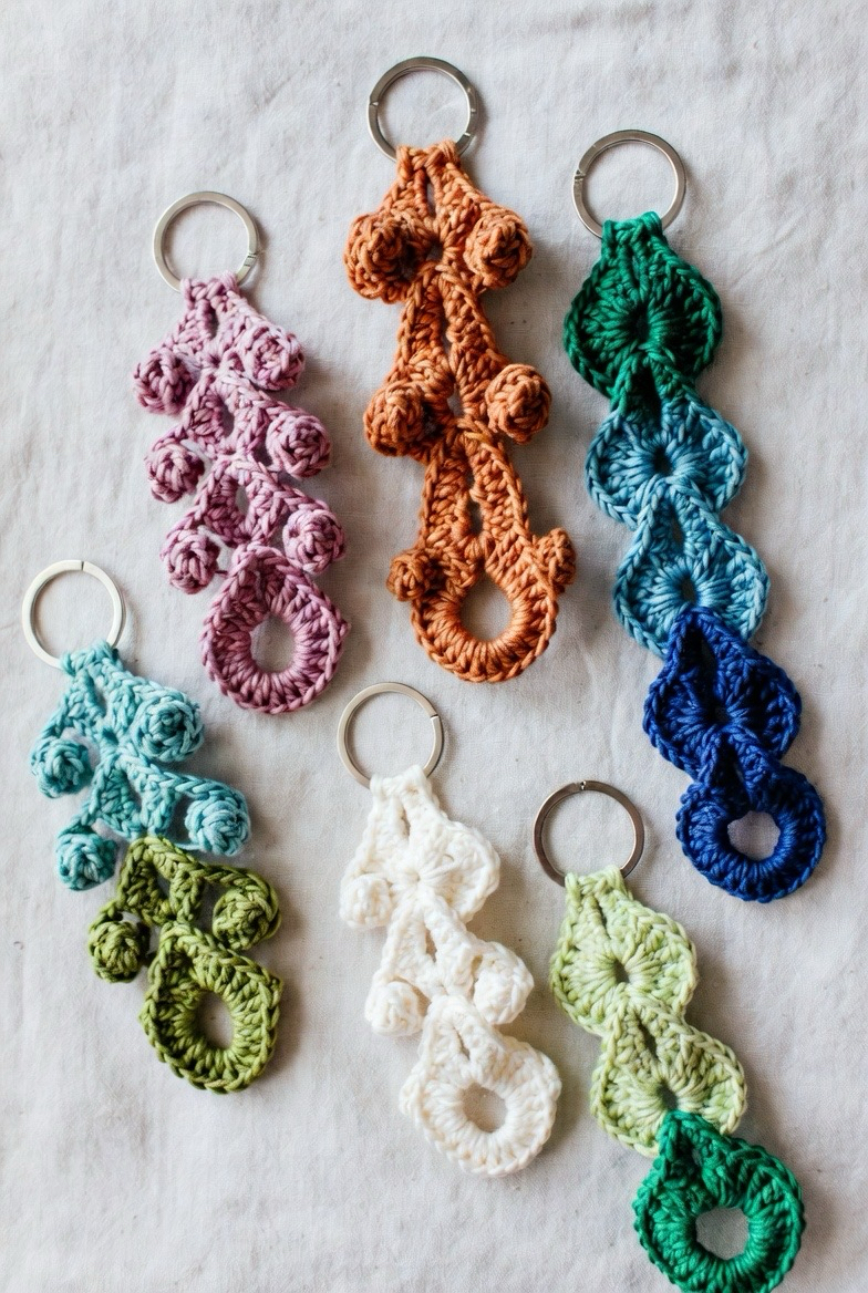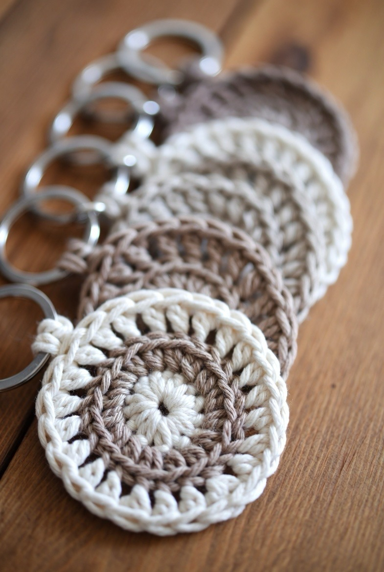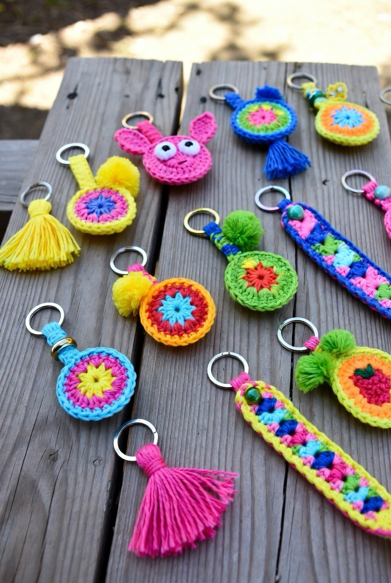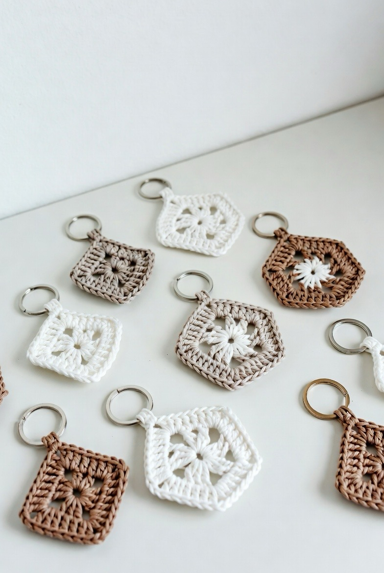 Turn classic granny squares into modern keychains. A great way to reuse leftover yarn.