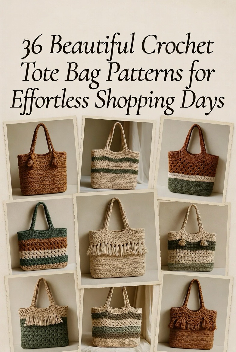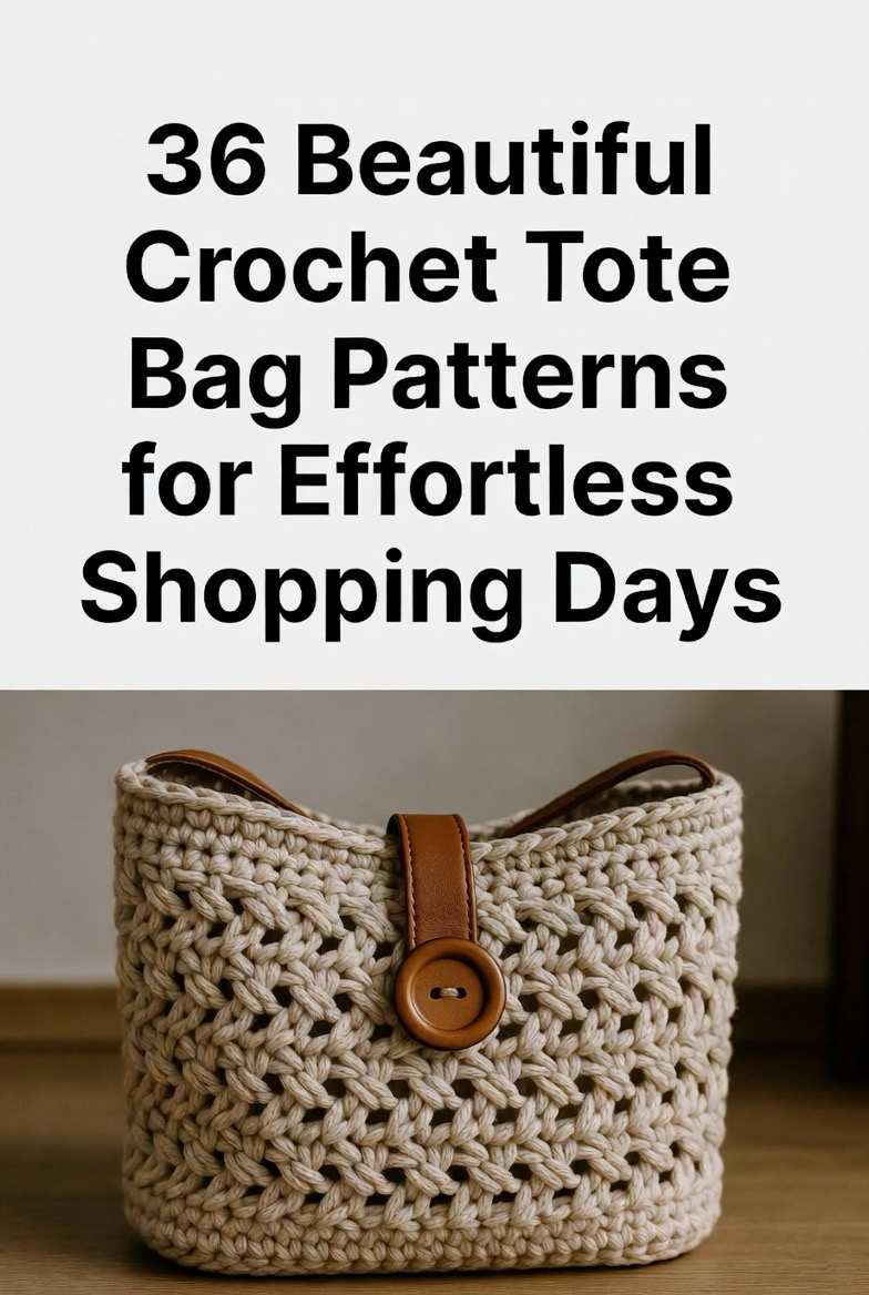 Crochet tote bags are practical, stylish, and perfect for effortless everyday shopping. With so many free patterns available, you can easily create a bag that fits your lifestyle, skill level, and personal style. From sturdy grocery totes to lightweight mesh designs, these 36 crochet tote bag patterns prove that handmade accessories can be both beautiful and functional. Choose your favorite pattern, grab your yarn, and enjoy shopping with a tote you’ll love using every day.