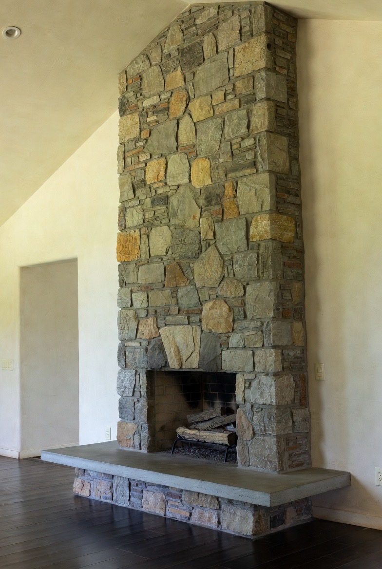 25.) River Rock Hearth with Smooth Plaster Surround