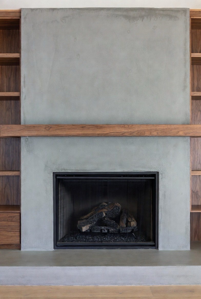 3.) Smooth Concrete Surround with Wood Accents