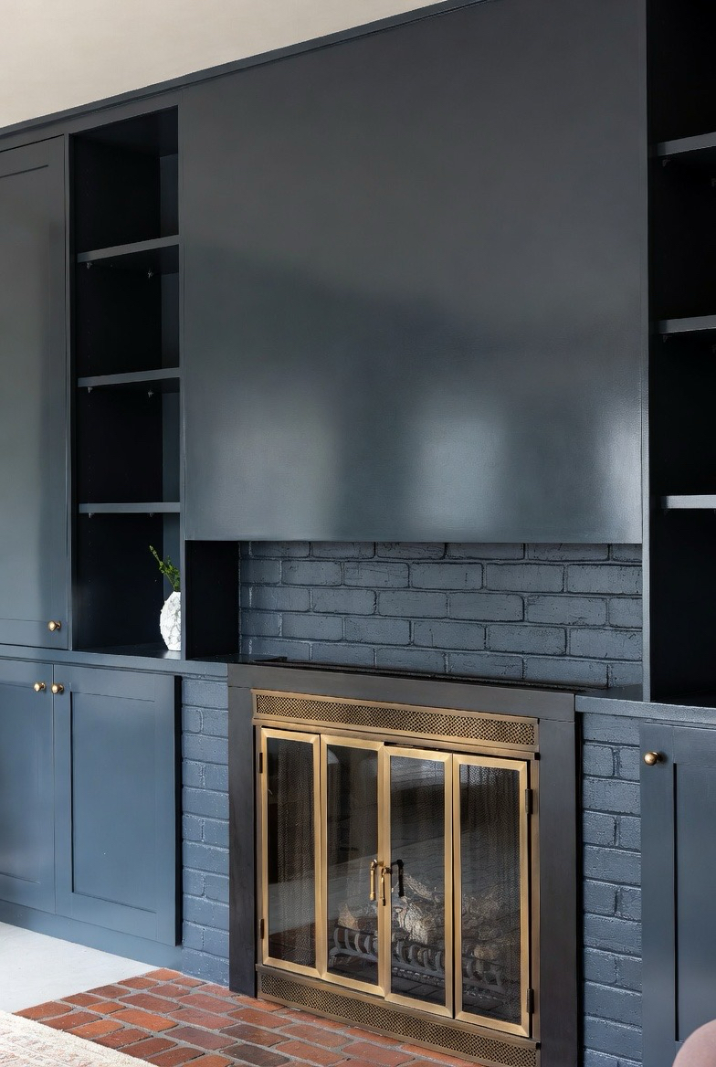 Give old brick a bold new life by painting it a rich charcoal hue. This modern update softens the brick texture while adding sophistication. Pair with brass accents, a sleek mantel, or floating shelving to enhance the retro-modern aesthetic. The dark tone instantly makes the fireplace look more refined and dramatic. This makeover works beautifully in bright rooms where the contrast can shine, adding depth and character without overwhelming the rest of the décor.