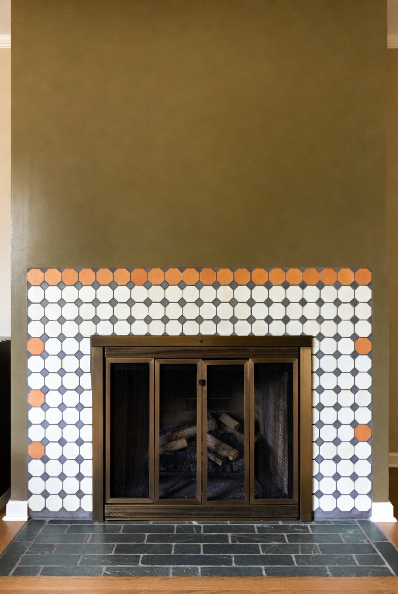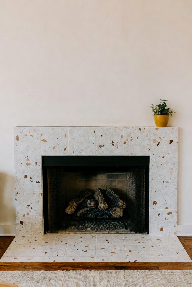 7.) Terrazzo Tile Fireplace Surround