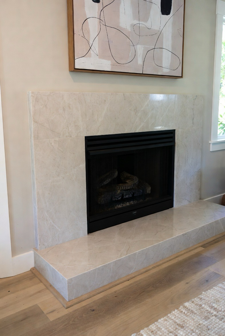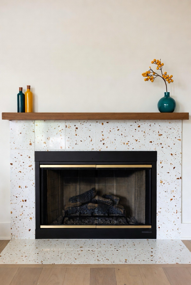 Give your fireplace a fresh and trendy mid-century flair using terrazzo tile. The speckled finish adds playful texture while maintaining sophistication. Choose colors that complement your décor—soft neutrals, earthy tones, or even pops of retro hues like mustard or teal. Pair the terrazzo with a slim mantel or none at all for a clean look. This upgrade adds instant character, making your fireplace an eye-catching statement that feels timeless and artistic.
