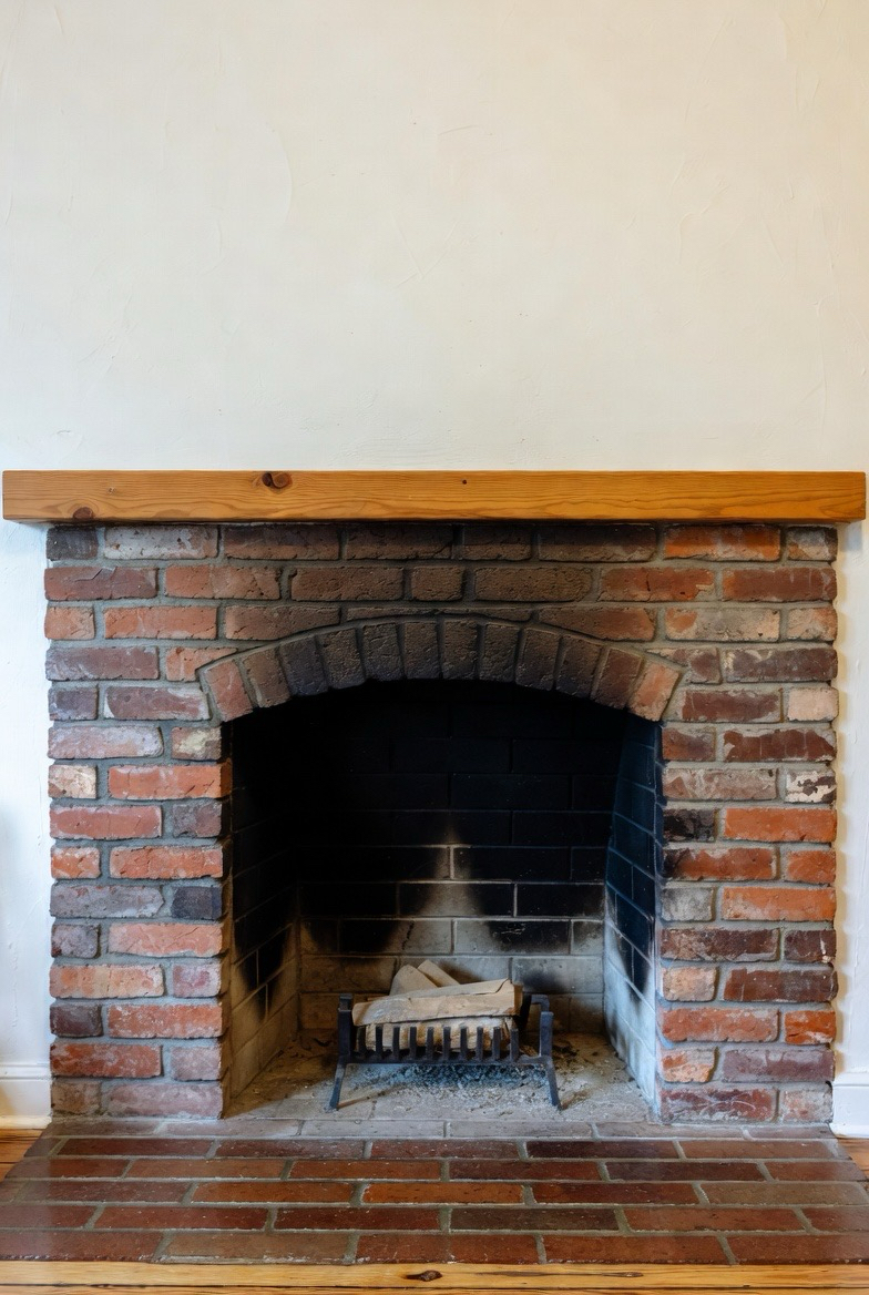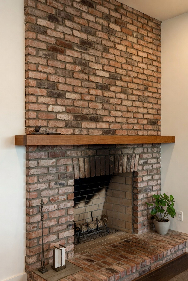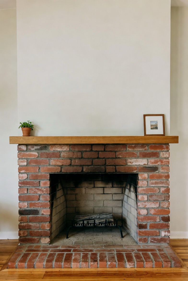Keep the brick natural but add a striking wooden mantel that extends across the wall. The long horizontal line enhances mid-century aesthetics while adding warmth. Pair with minimal décor for a balanced look. This makeover is perfect for those who love earthy textures with modern elegance.