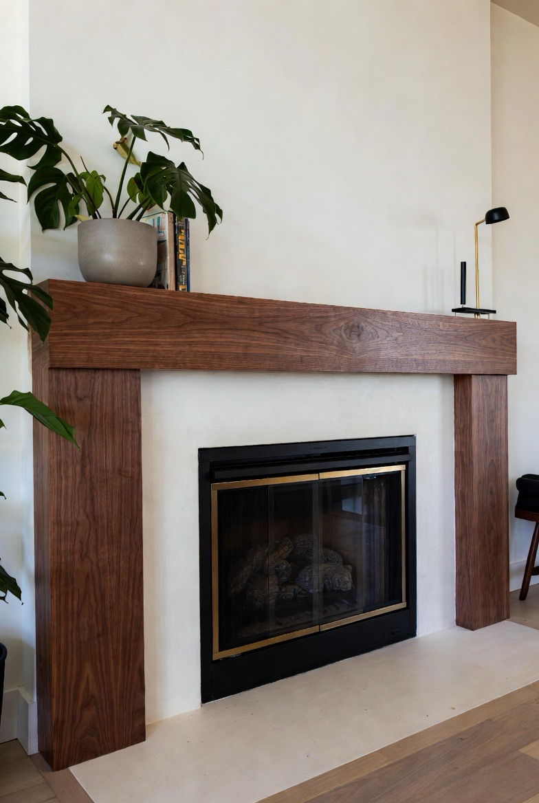 Upgrade your fireplace with a wide, beautifully stained walnut mantel that serves as a stunning mid-century statement piece. The deep wood tones instantly warm up the room, adding richness and refinement. Pair with a neutral surround like plaster, tile, or stone for balance. This transformation is perfect for showcasing décor, plants, or artwork while maintaining a clean-lined retro look.