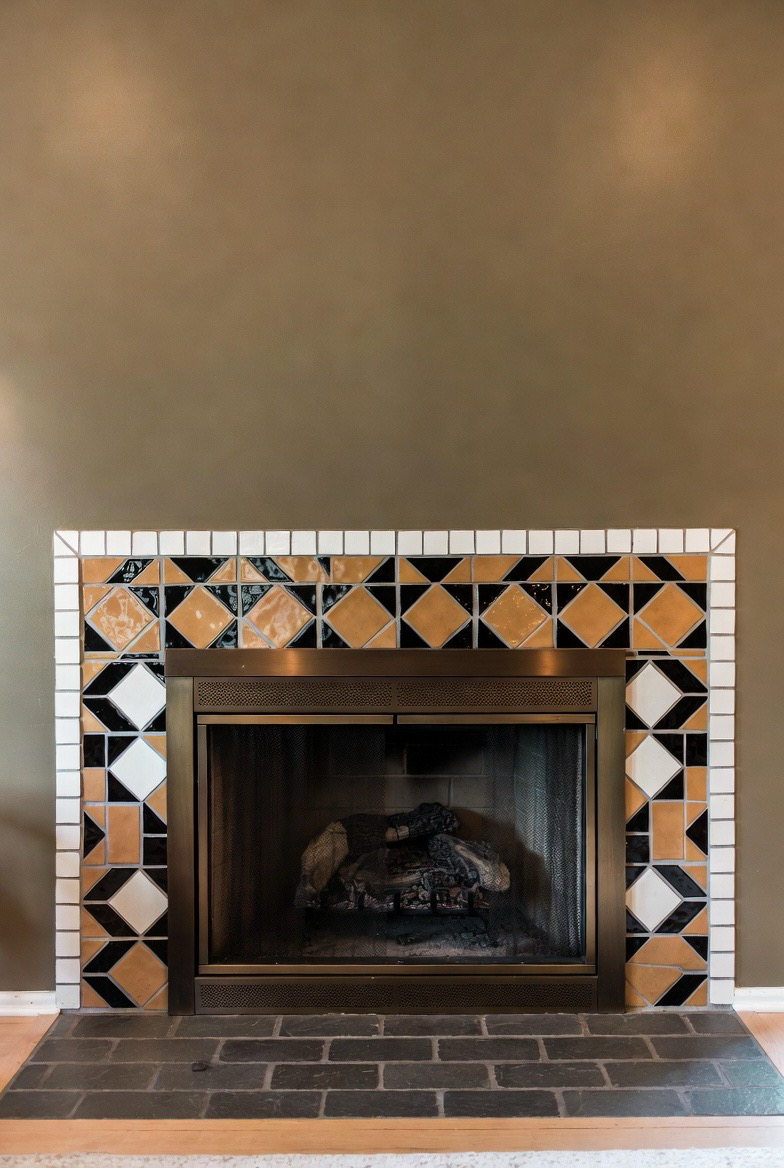 Capture true mid-century energy with a geometric tile surround featuring bold shapes and contrasting tones. Whether you choose hexagons, diamonds, or repeating patterns, this look adds excitement while staying cohesive. Pair with minimal décor and streamlined furniture to avoid overwhelming the space. This makeover instantly transforms your fireplace into a stylish focal point with artistic flair.