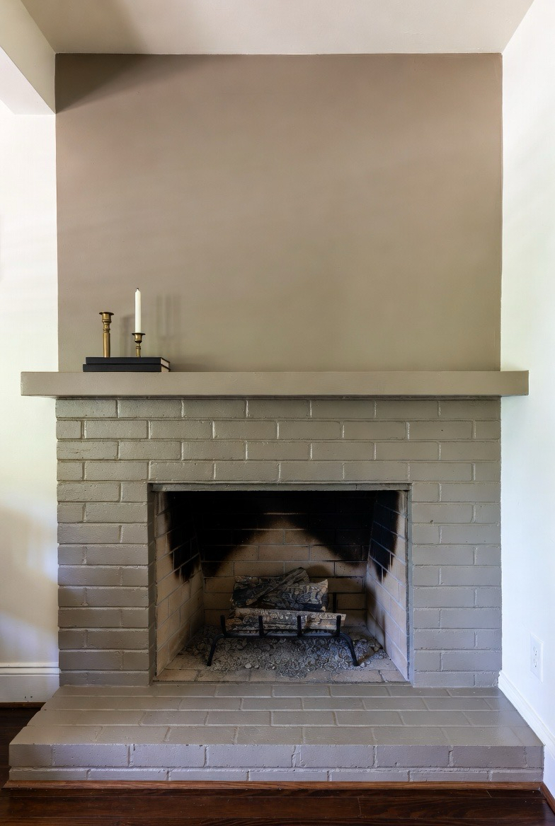 33.) Brick Fireplace with Painted Mantel Pop