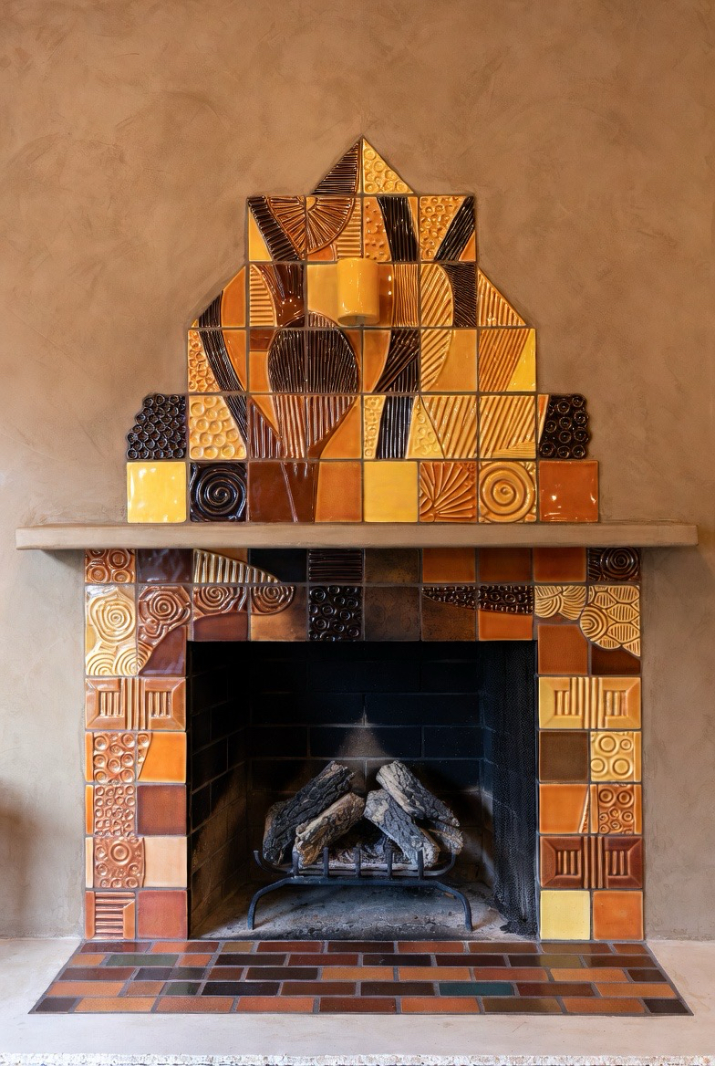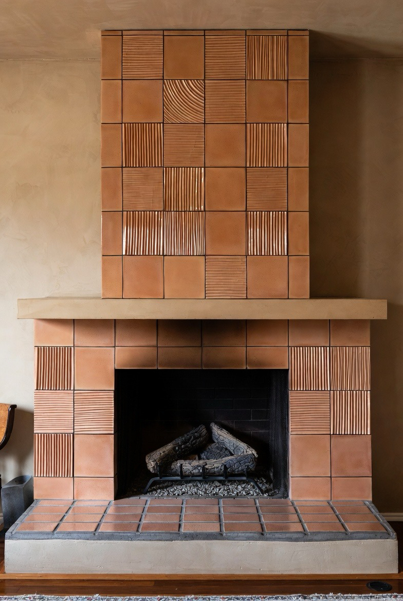 22.) Sculptural Tile Surround in Earth Tones
