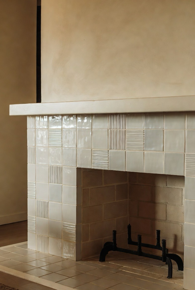 If you prefer subtle elegance, opt for textured tile in warm neutrals like ivory, sand, or stone gray. The raised patterns provide visual interest without bold colors. Pair with a minimalist mantel for a clean mid-century aesthetic. This transformation is ideal for calm, sophisticated living rooms.
