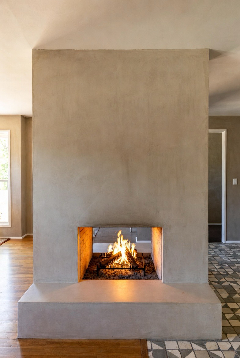29.) Double-Sided Mid-Century Fireplace