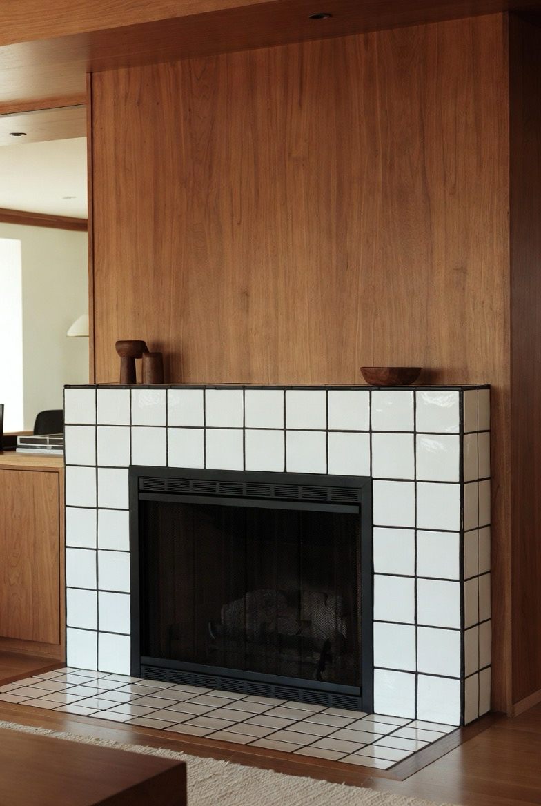 Create striking contrast with white tiles outlined in bold black grout. This geometric look fits the mid-century aesthetic beautifully. Pair with simple wood décor and natural textures to soften the edges. This transformation is ideal for bright, airy living spaces wanting a bold but clean focal point.