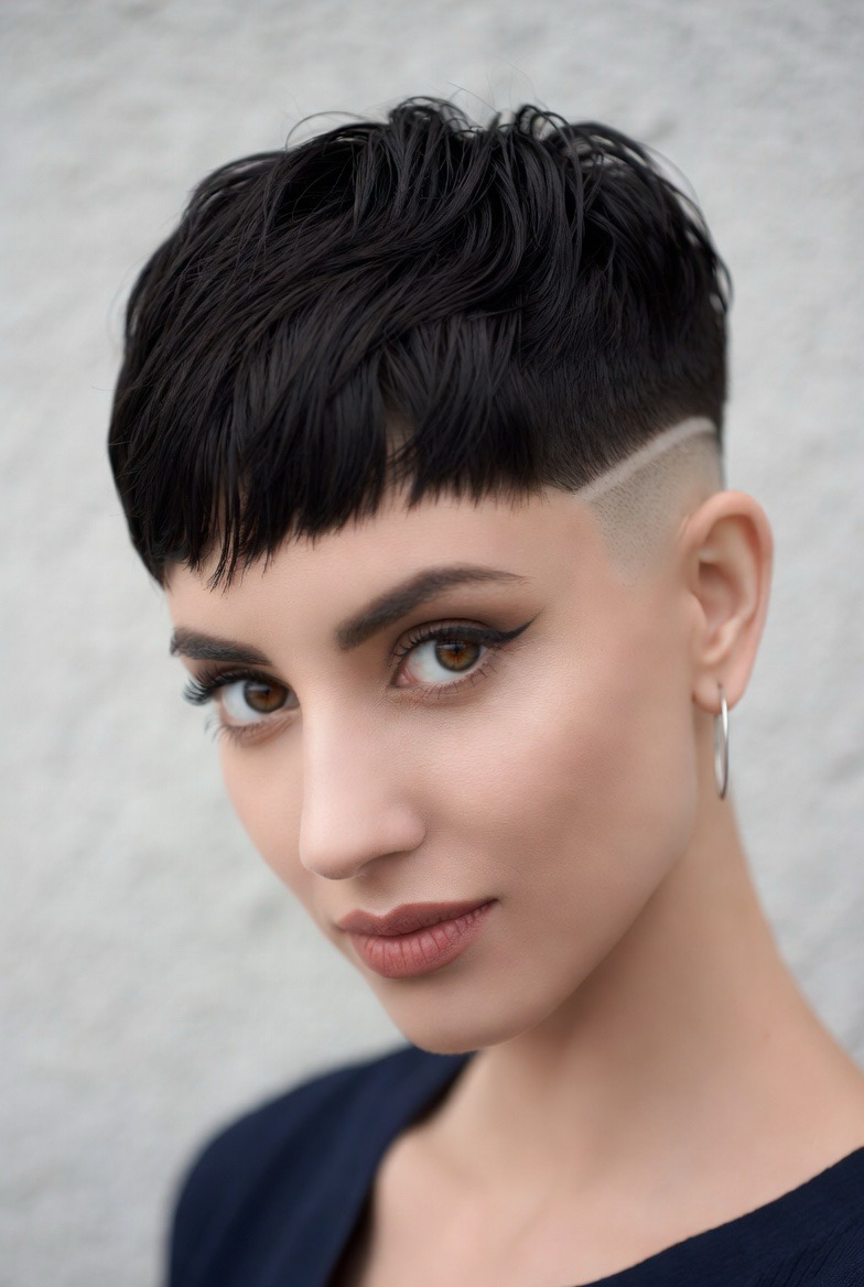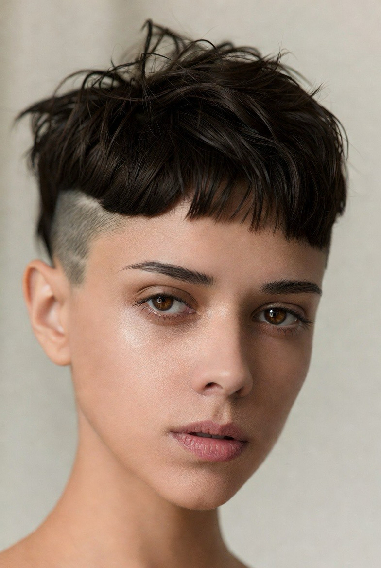 An undercut pixie brings bold attitude. Shaved sides paired with longer layers on top create a striking, confident look.