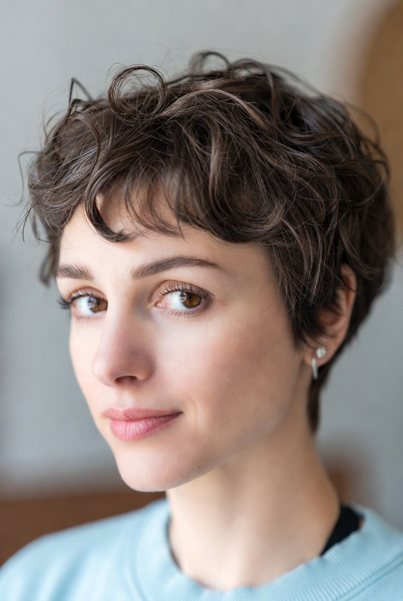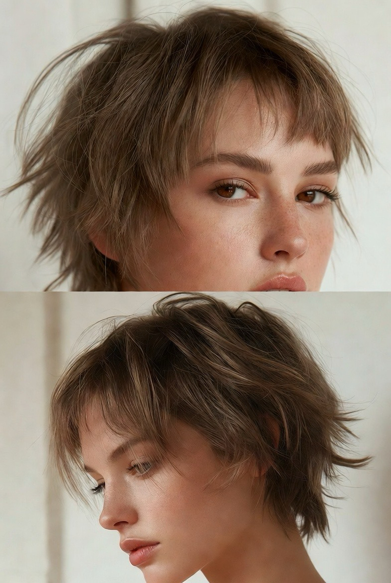 Wispy ends soften short cuts while keeping them playful. The result is light, feminine, and modern.