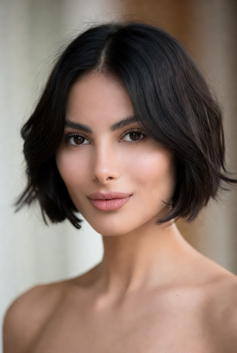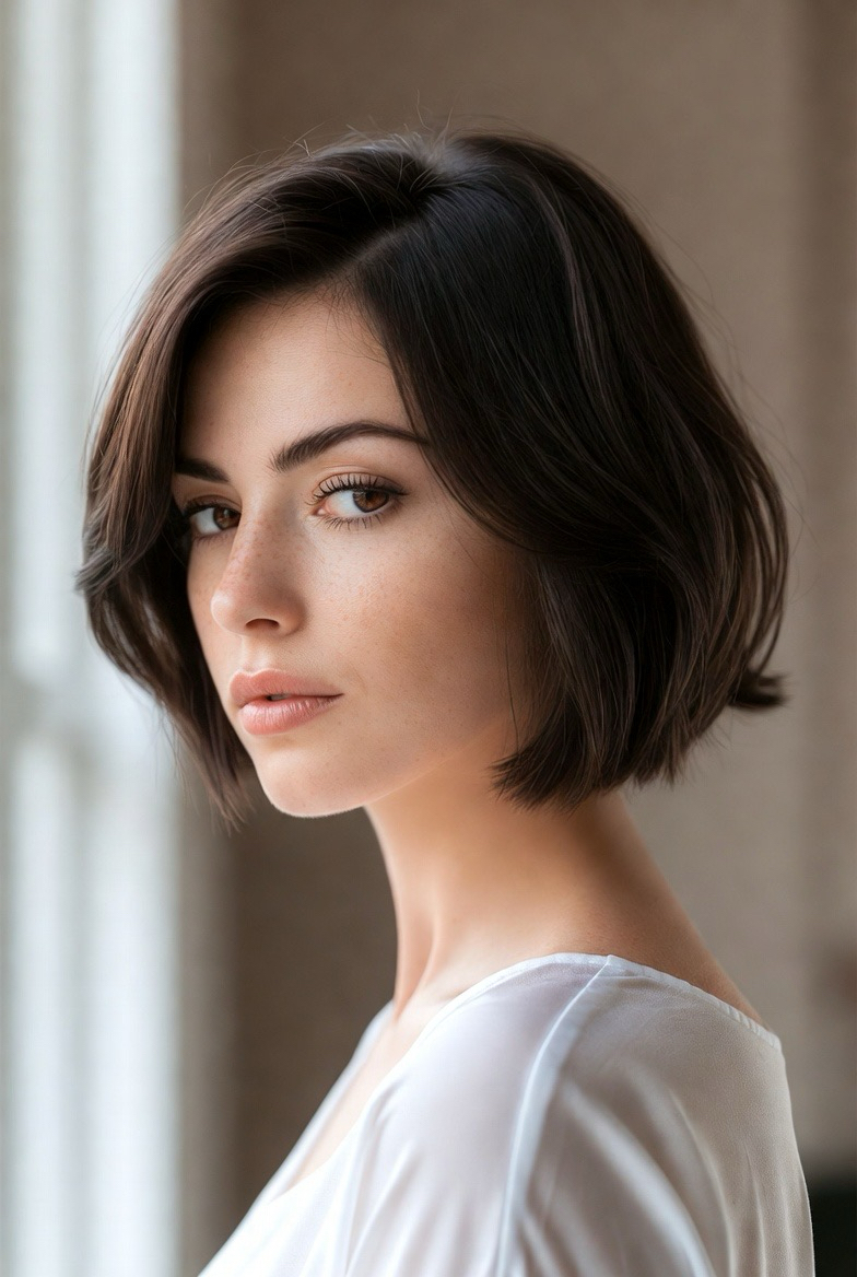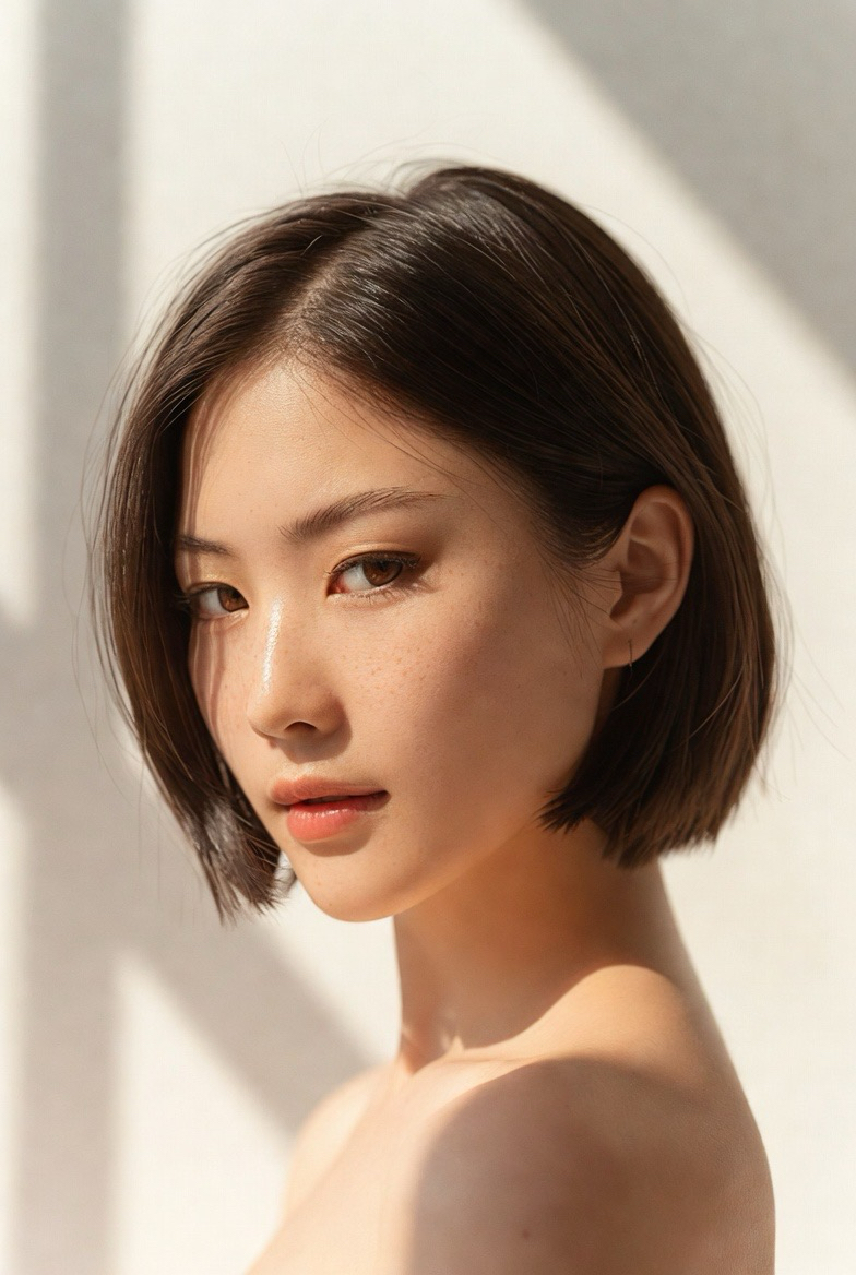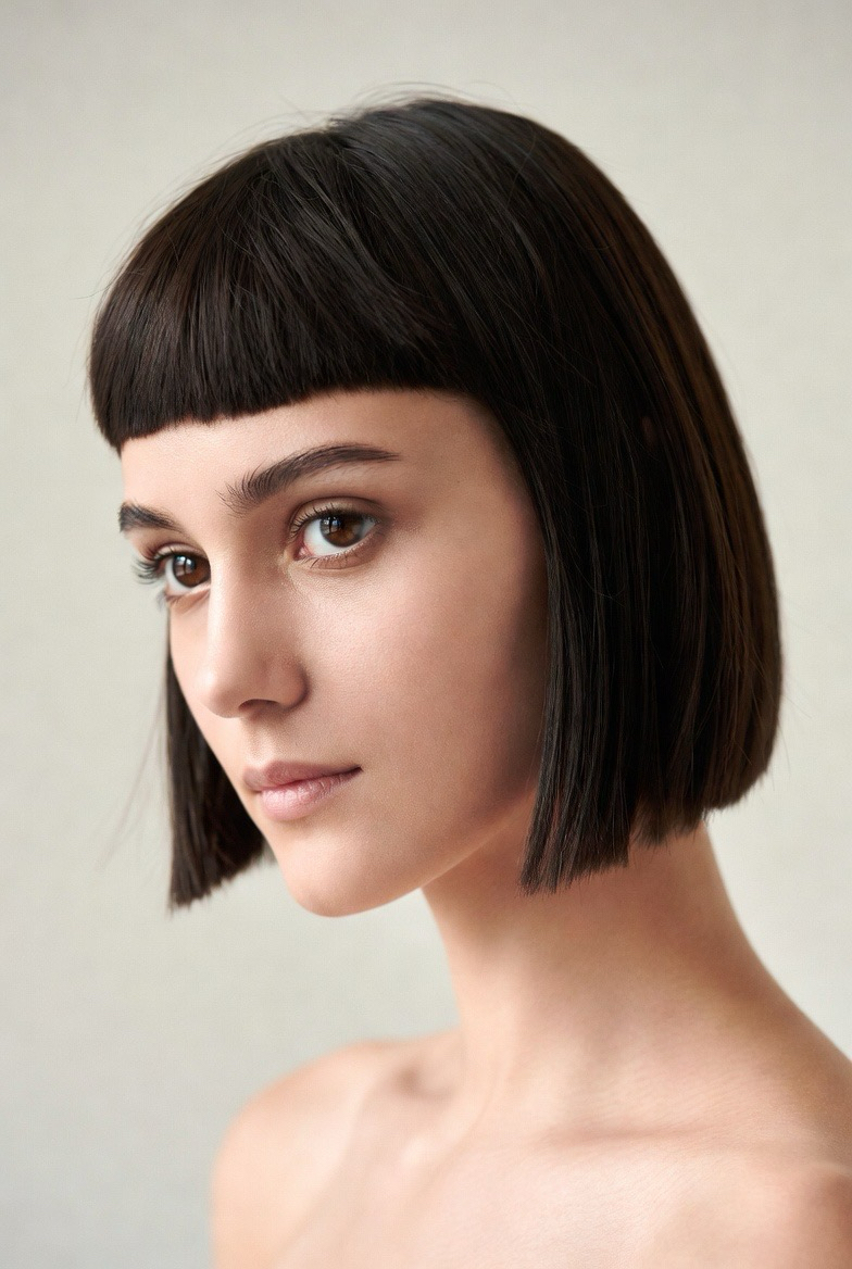 A blunt cropped cut feels modern and bold. Clean edges create a sharp silhouette that suits oval and square faces.