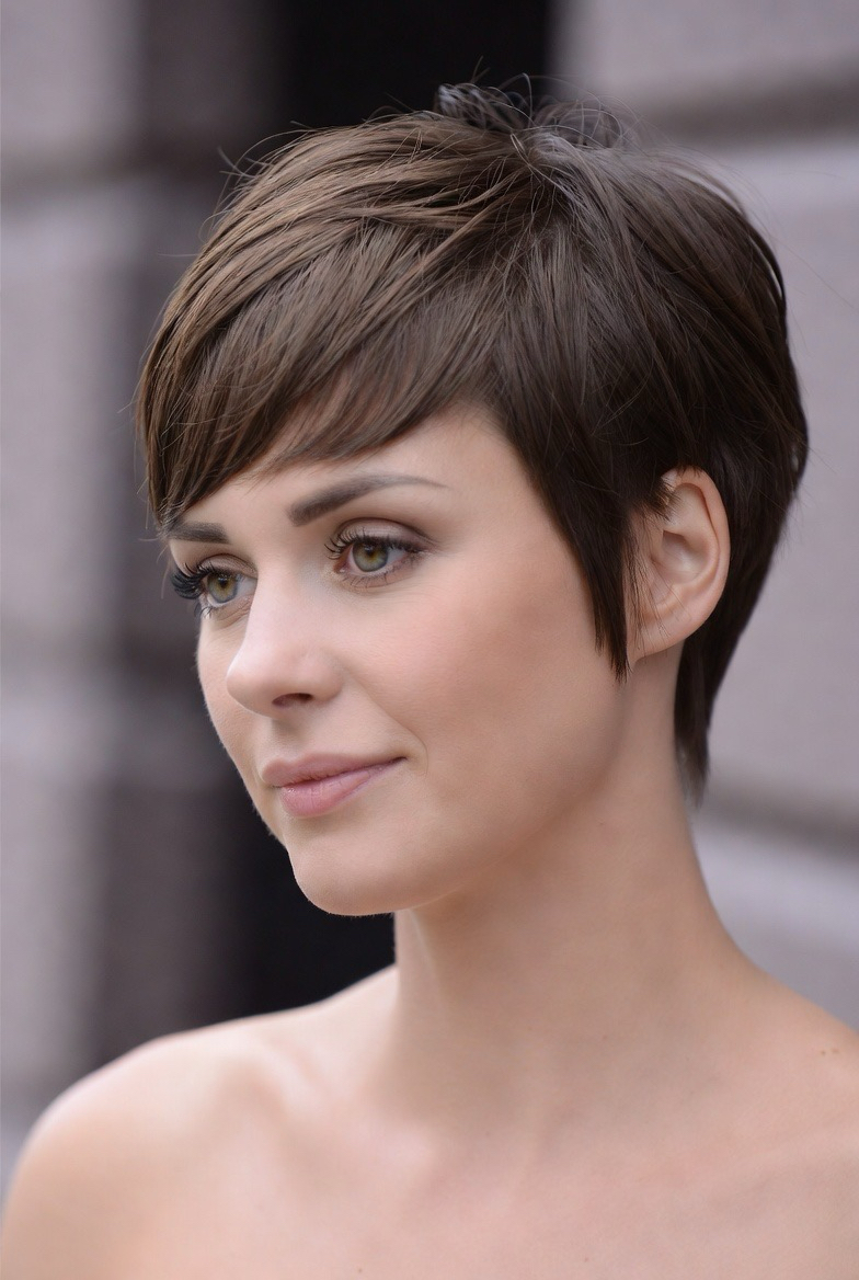 A longer fringe offers styling flexibility and softens the face. This style suits women who want short hair with a touch of drama.