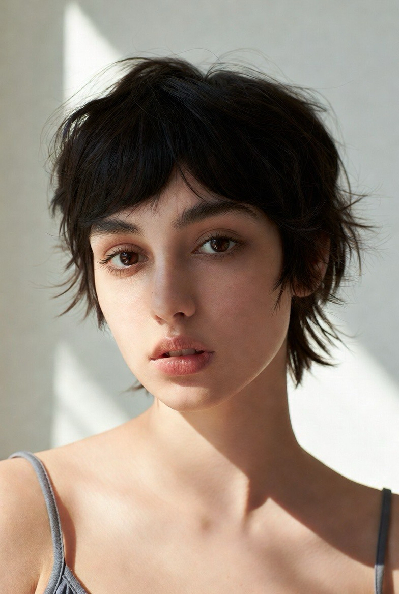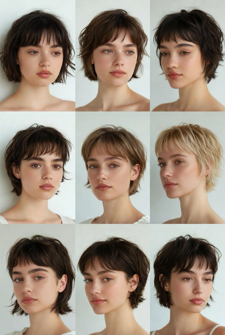 A cropped shag features layered texture and a slightly undone finish. This style adds volume and works well for thin or fine hair. The layered structure flatters most face shapes and gives off a cool, effortless vibe.