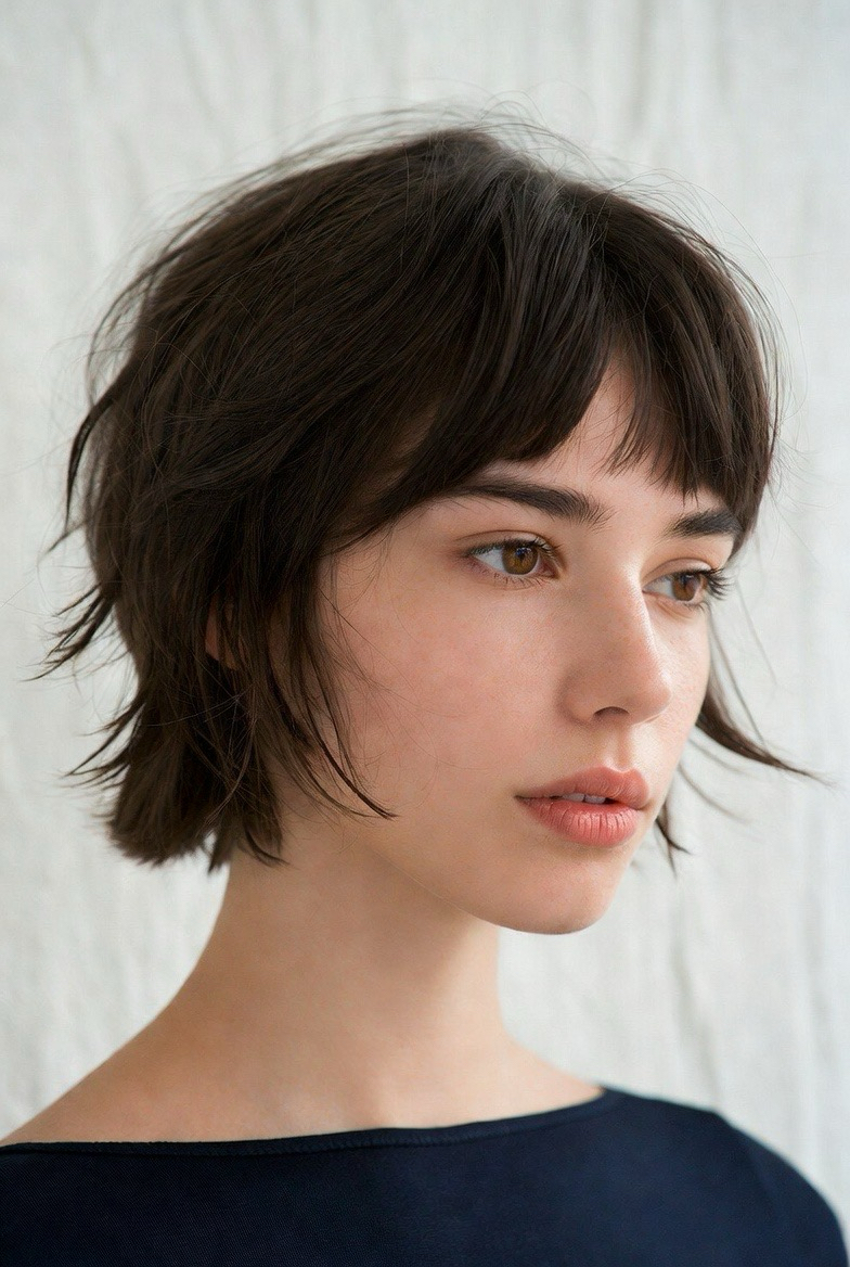 The tousled cropped cut embraces a relaxed, effortless aesthetic. Slightly messy layers add texture and movement, making this style youthful and playful. It’s perfect for women who prefer low-maintenance hairstyles that still look intentionally styled.