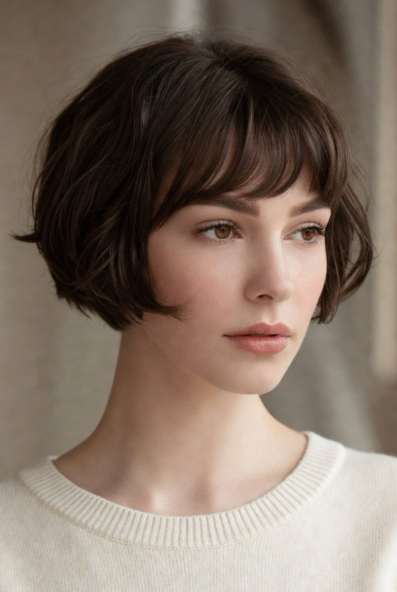 Soft bangs balance short styles and add charm. They’re flattering and versatile.