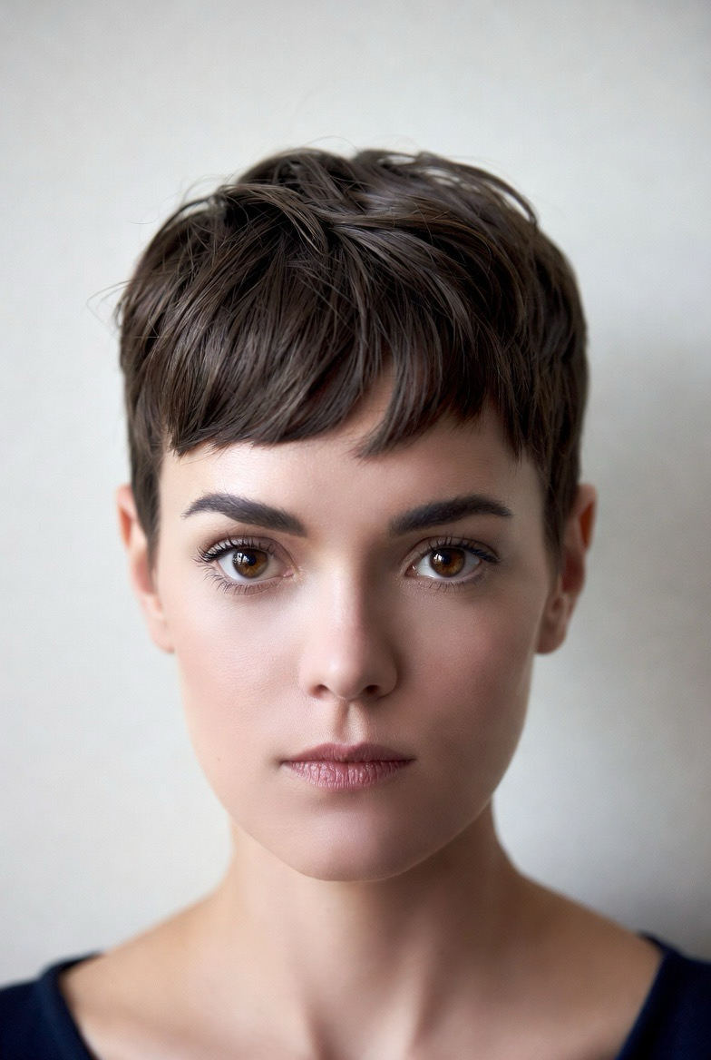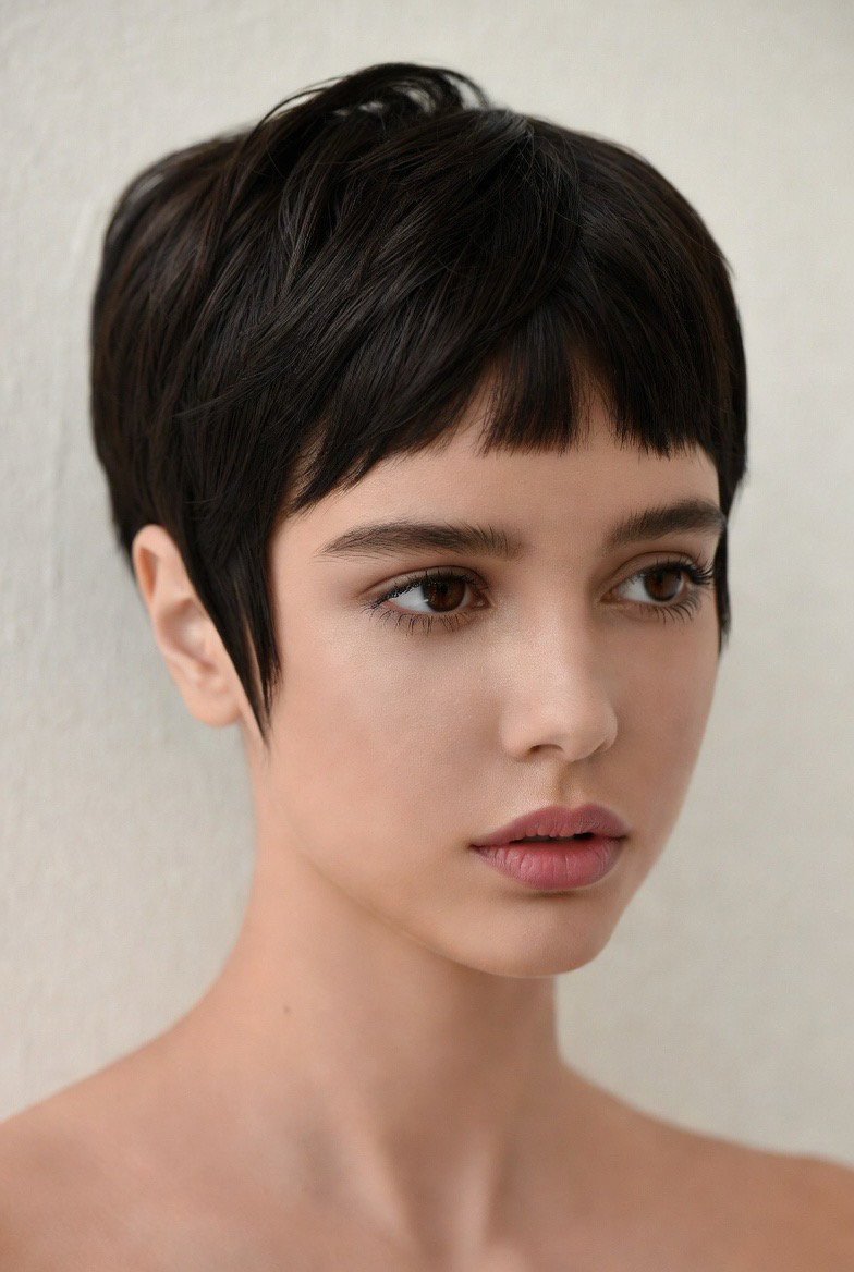 Micro bangs bring an artistic edge to cropped hairstyles. Short fringe highlights facial features and works best for oval and heart-shaped faces. This look feels fashion-forward and bold, perfect for women who enjoy standing out with their hair.