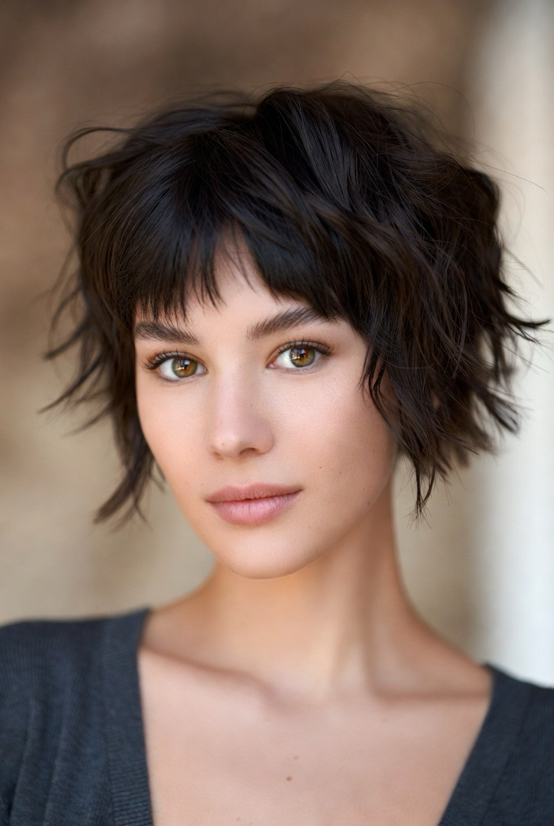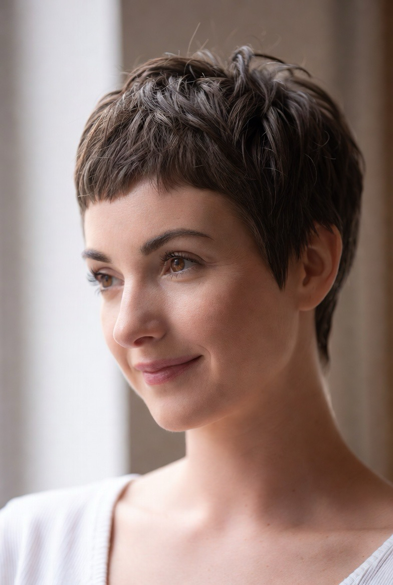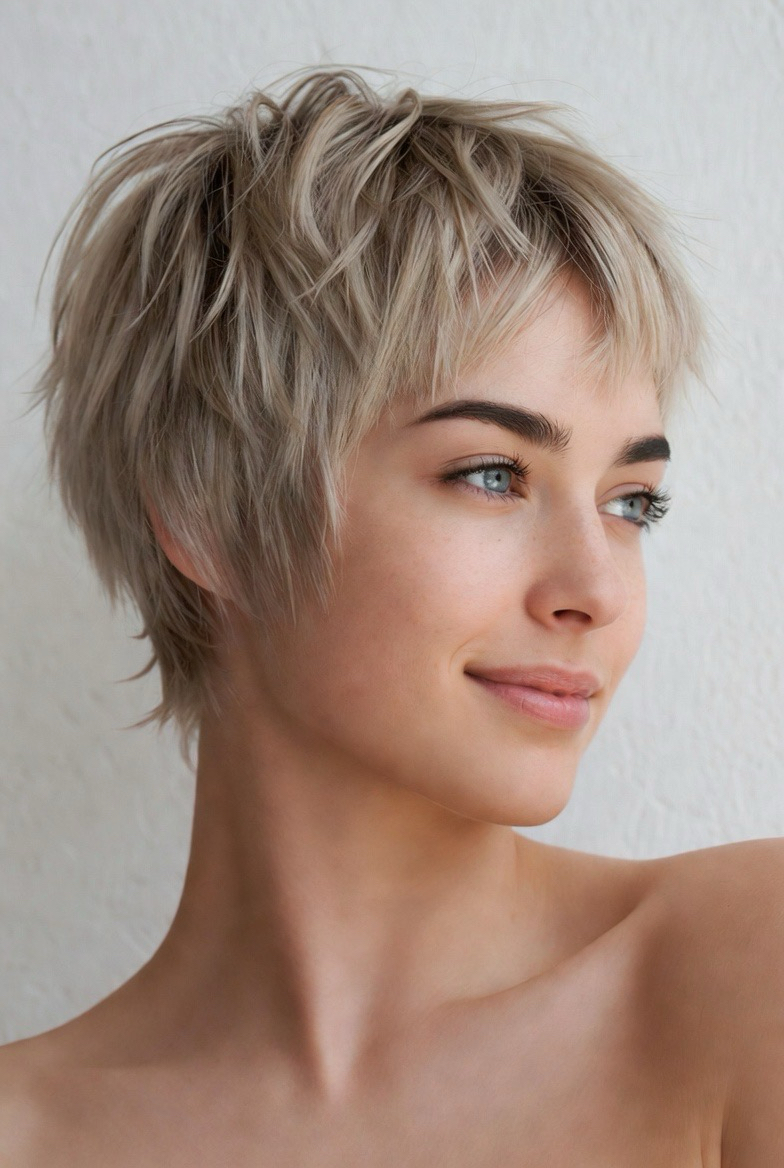 Wispy ends soften short haircuts, adding femininity and lightness. This style feels gentle and approachable.