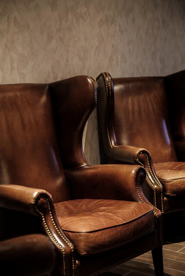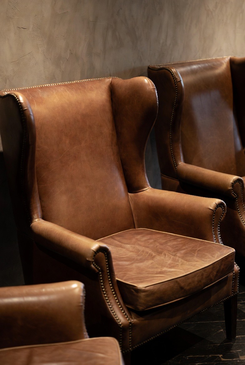 3.) Leather Wingback Chairs