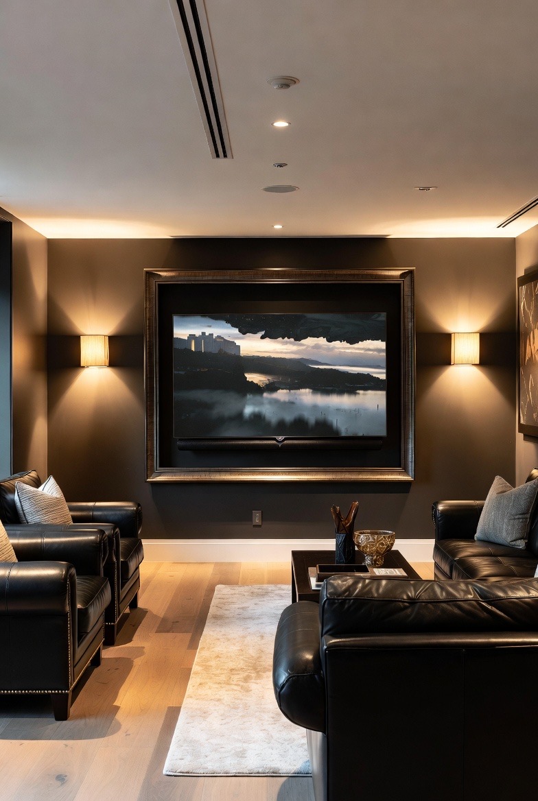 A mature space should sound as good as it looks. Acoustic panels don’t have to look like foam squares from a recording studio. Modern options include vertical wood slats over dark felt, which add a beautiful architectural texture to the walls while dampening echo. This is especially important if you have a high-end sound system, ensuring that your music or movies sound crisp and professional.