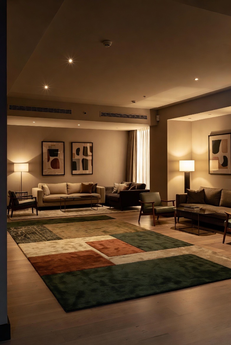 A room without a rug feels unfinished and echoes far too much. A large, low-pile rug in a geometric pattern or a solid, earthy tone like forest green or deep terracotta adds warmth and acoustic insulation. It defines the seating area and adds a layer of comfort underfoot that makes the room feel cozy rather than cold. It is the anchor that ties all your furniture pieces together into one cohesive unit.