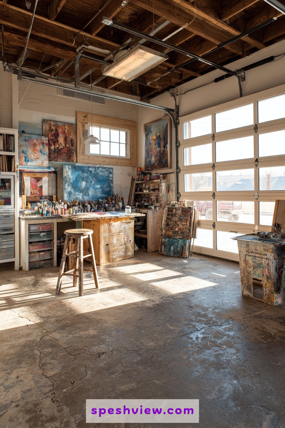 An artist needs a space that is both functional and flooded with light, making the garage an excellent candidate for a studio conversion. By installing large industrial-style windows or a glass-paneled garage door, you can maximize natural light throughout the day. Open-concept floor plans allow for large-scale projects, while mobile storage units keep paints, brushes, and canvases organized and easily accessible. The rugged, concrete aesthetic of a garage complements the creative process, offering a space where it is perfectly acceptable to get a little messy. It is a sanctuary for personal expression, providing the solitude necessary to dive deep into your artistic vision without the interruptions of a busy home life.