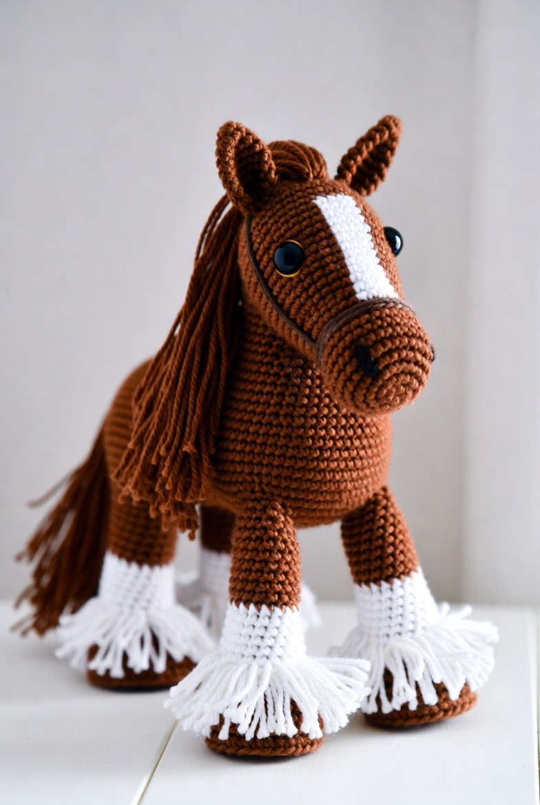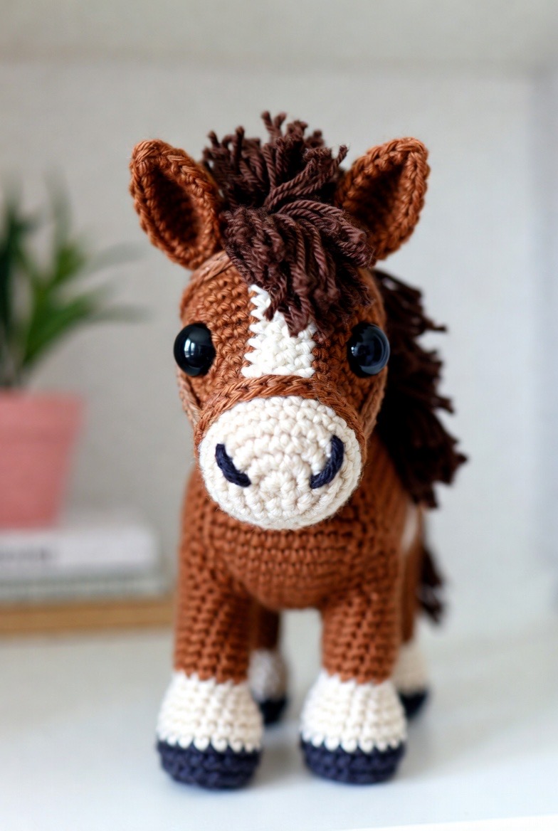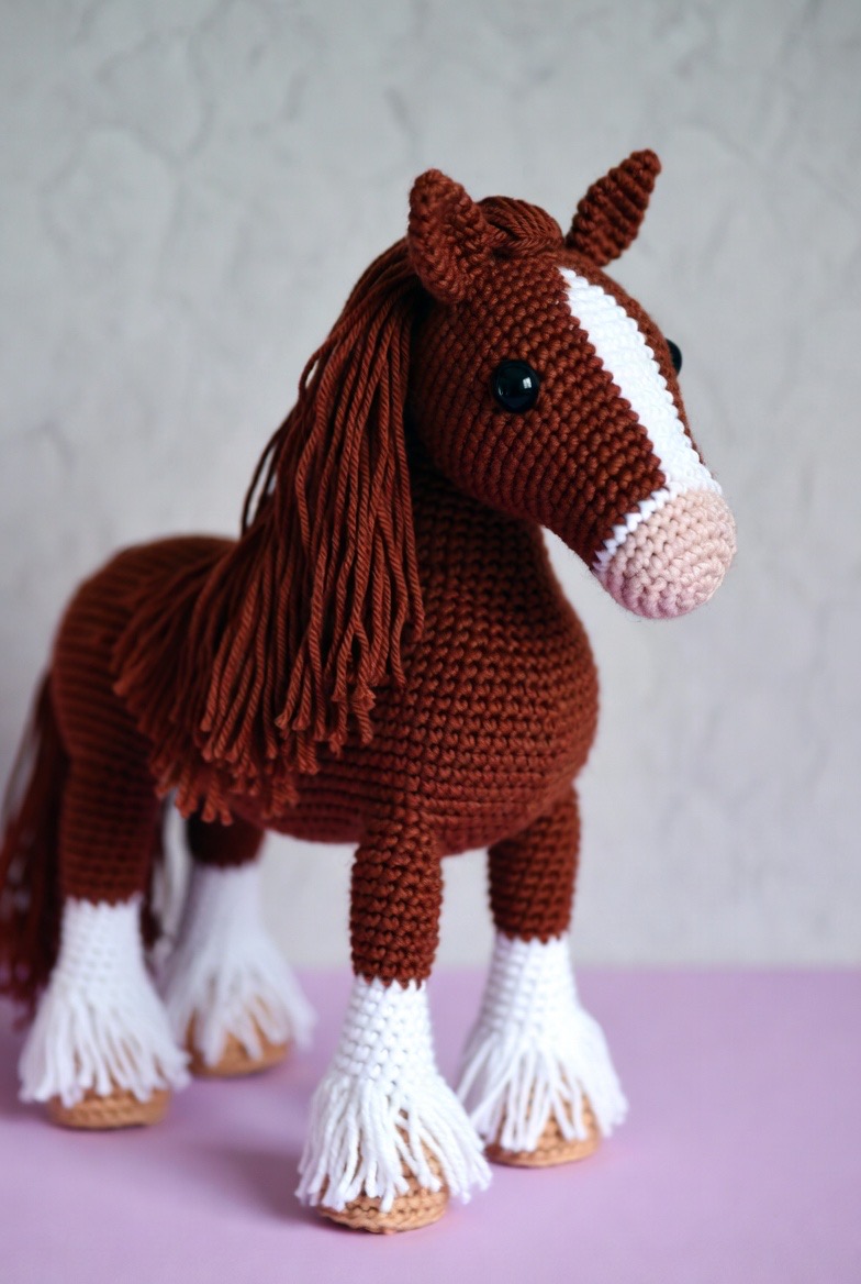 Horses are noble and powerful creatures, and a crochet version with a long, fringed mane and tail captures that beauty in a soft and approachable way. Using a deep chestnut yarn with stark white markings on the face and feet creates a realistic yet cuddly look that appeals to both children and adults. Adding a tiny bit of weight to the hooves, such as small craft beads safely tucked inside, helps the horse stand independently on a bedroom dresser or a study desk. The process of brushing out the yarn for the mane creates a realistic, flowing texture that makes this Clydesdale feel like a true heirloom piece that will be cherished for many years.