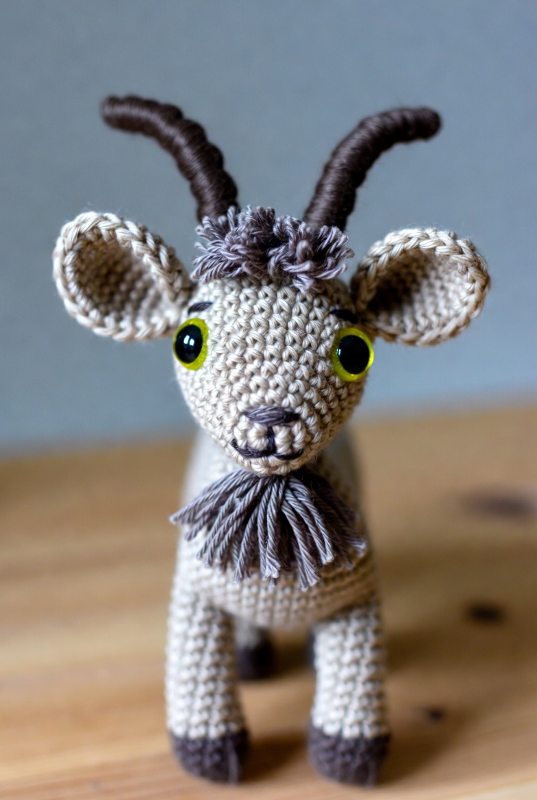 Goats have so much natural personality and spirit, and an amigurumi version can capture that mischievous look with a small, tufted beard and curved, sturdy horns. Using a variegated gray or tan yarn gives the goat a realistic, rugged appearance that mimics the coat of a mountain dweller. He is the perfect character to add to a farm play set, known for his curious nature and his hardy, adventurous spirit. The shaping of the face is key here, as a slightly tilted head or a small embroidered smirk can bring the entire character to life. He is a fantastic project for anyone looking to experiment with more sculptural crochet techniques and mixed yarn types.