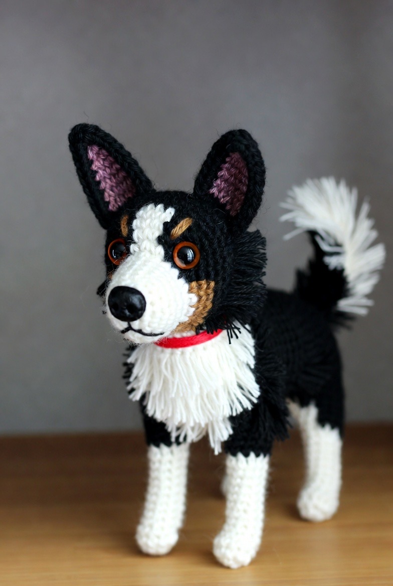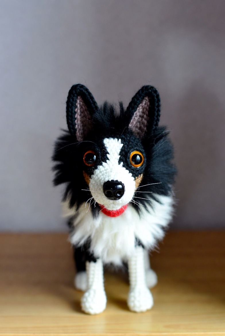 No farm is truly complete without a hardworking dog to keep everyone in line and make sure the chores get done. A black and white Border Collie with a focused expression and a bushy, white-tipped tail is a great addition to your stitched collection. This project allows for a bit more detail than some of the others, like stitching a tiny red collar or using safety eyes that seem to sparkle with intelligence. The high contrast between the black and white yarn makes this dog a striking visual piece. He represents the loyalty and energy of the farm, standing as a silent guardian over your other amigurumi creatures on the display shelf.