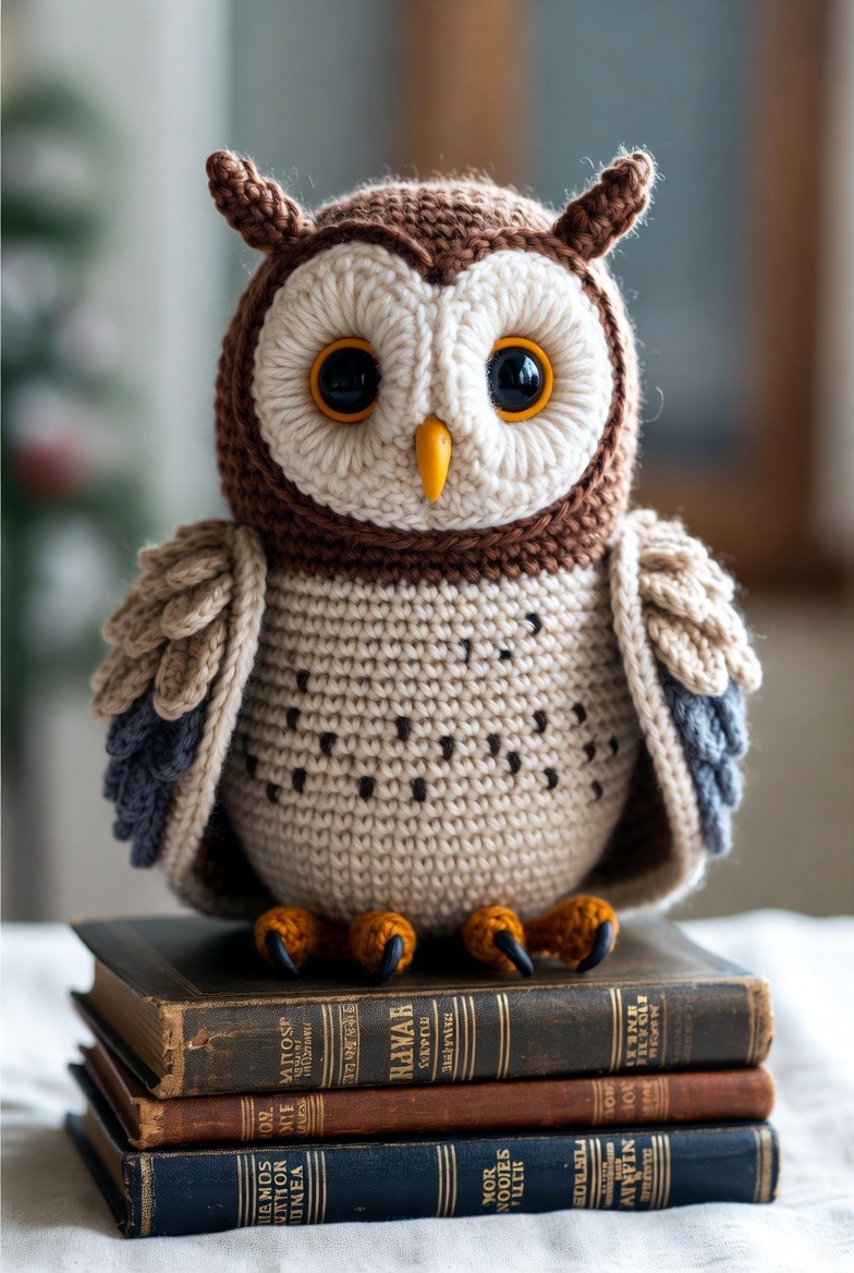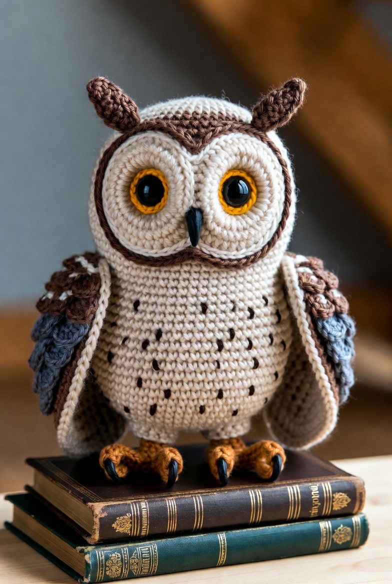 Perched high in the rafters of the barn, the owl keeps a wise watch over the farm during the quiet night hours. Using shades of cream, brown, and charcoal gray, you can create a majestic-looking bird with large, soulful eyes made from felt or safety buttons. This amigurumi piece looks stunning when placed on top of a stack of old books or nestled into a holiday wreath on the front door. The feather patterns can be achieved through clever color changes or by using a scale-like stitch that adds depth and realism to the wings. It is a sophisticated project that brings a touch of nature’s mystery into your home.