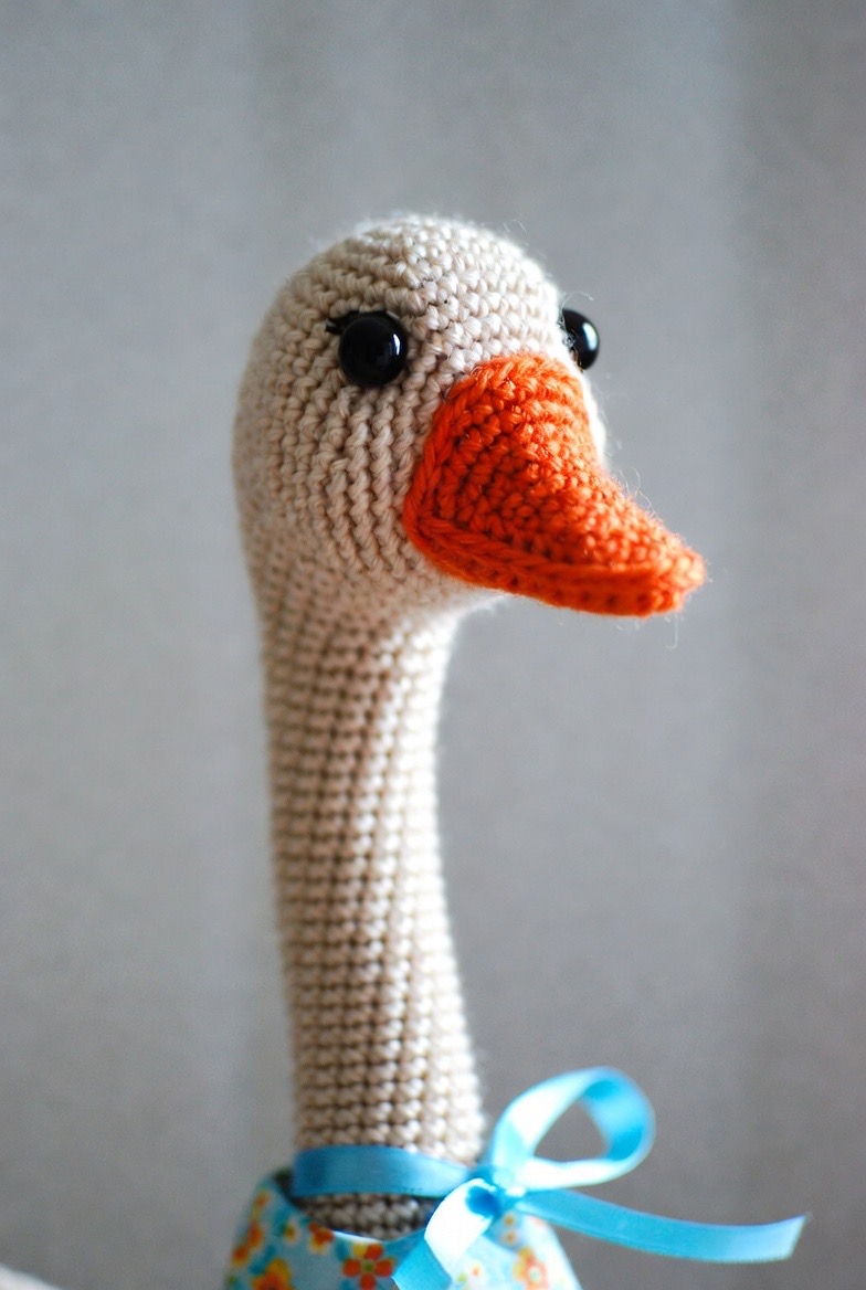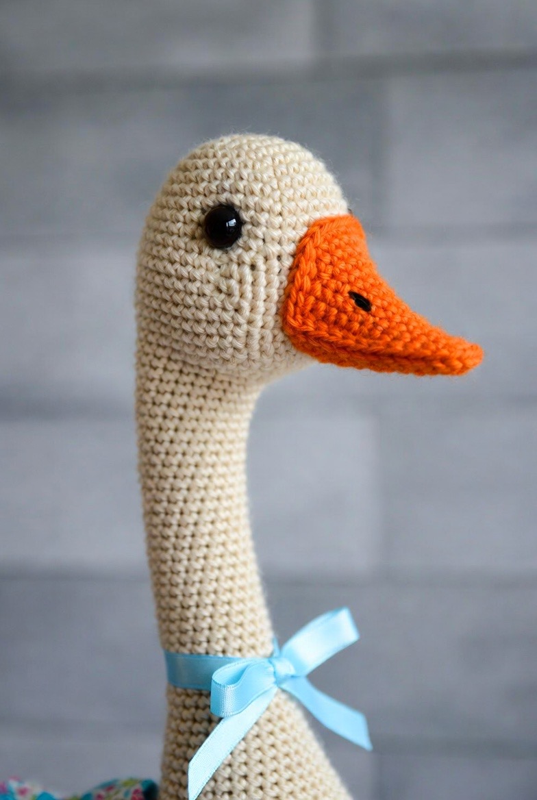 With a long, elegant neck and a wide, bright orange beak, the goose adds a touch of classic storybook charm to your handmade collection. You can even crochet a tiny blue ribbon or a small floral scarf to tie around its neck for a vintage look that feels like it belongs in a professional boutique or a cozy, traditional nursery. The smooth, clean lines of the goose make it a sophisticated project that relies on perfect shaping rather than complex stitches. It evokes memories of old folk tales and country walks by the pond, providing a sense of nostalgia and grace to your interior decorating.