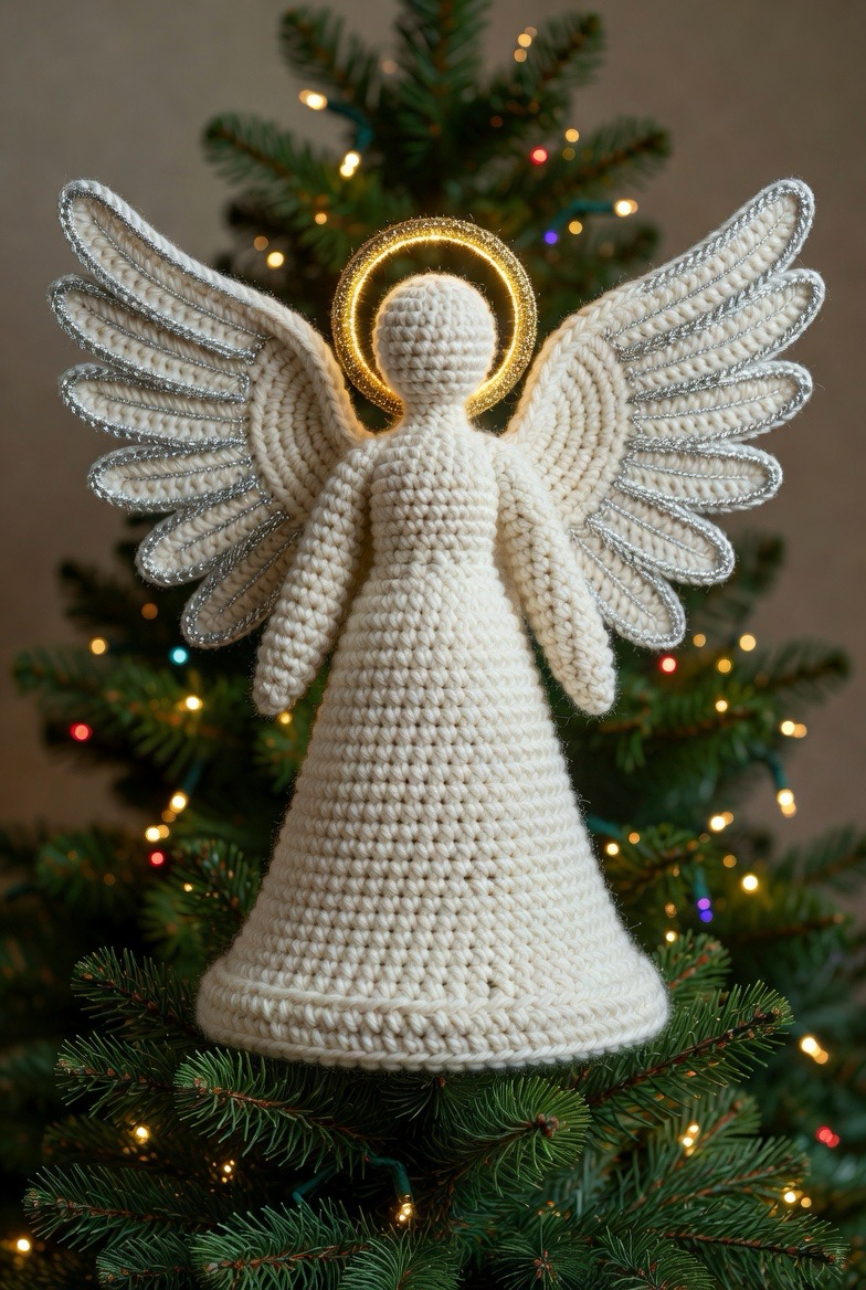 Every holiday tree needs a focal point, and a large, structured crochet angel is the ultimate crowning glory. This project is more substantial than a standard ornament and often features a wide, cone shaped base that allows it to sit securely atop a pine branch. To achieve the necessary height and stability, you might use a thicker cord or double up your yarn strands. Many designers incorporate metallic gold or silver thread into the halo and wing borders to catch the twinkling holiday lights and add a touch of celestial sparkle.