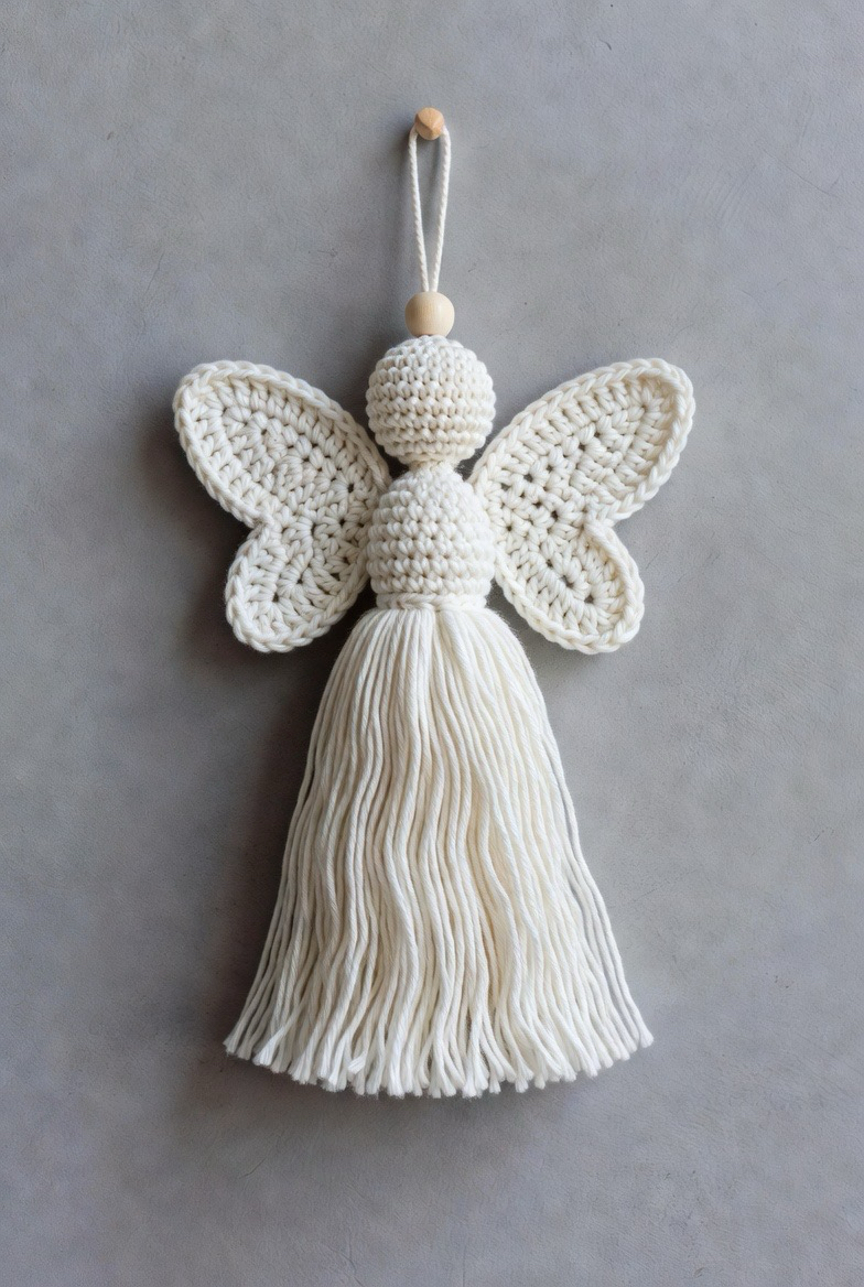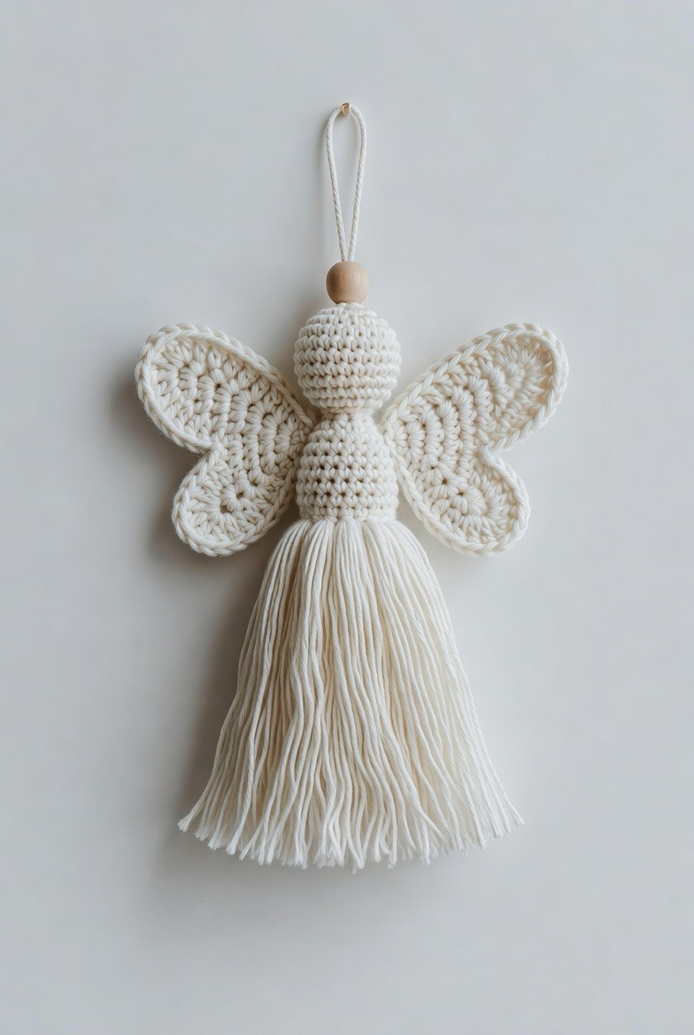 If you are short on time but still want to create something beautiful, the tassel style angel is a brilliant solution. This design relies on a clever combination of yarn wrapping and simple crochet accents. The body is formed by a thick, lush tassel, while the head is often a wooden bead or a small crocheted sphere. The “crochet” element comes into play with the wings, which can be worked as simple, airy butterflies or teardrop shapes attached to the back. It is a boho chic take on a classic symbol that looks stunning on backpacks or doorknobs.