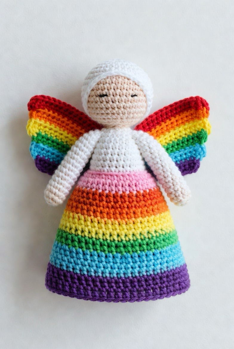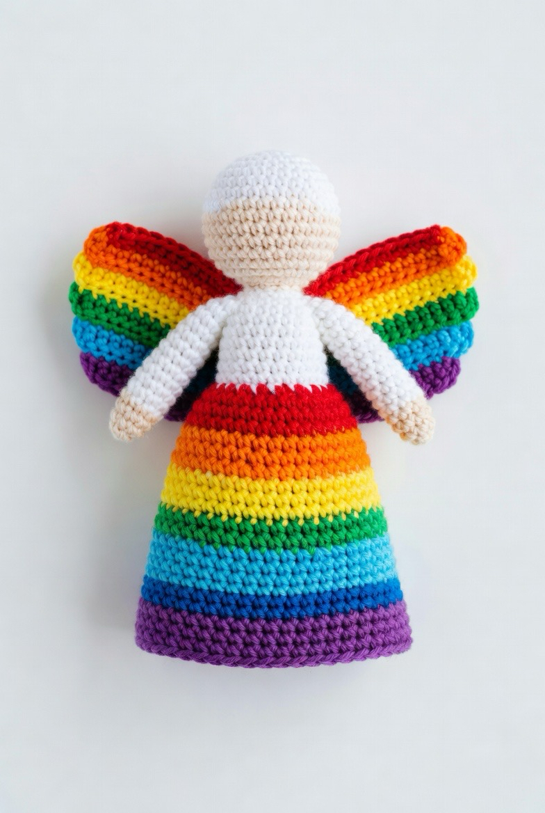 Angels do not always have to be white or cream. A rainbow themed angel serves as a powerful symbol of hope and inclusion. This project allows you to use up your colorful scrap yarn by striping the skirt or creating multi colored wings. Each tier of the angel’s dress can represent a different color of the spectrum, resulting in a vibrant piece of art that brightens up any room. These are particularly popular for “miracle baby” gifts or as symbols of solidarity and joy within a community.