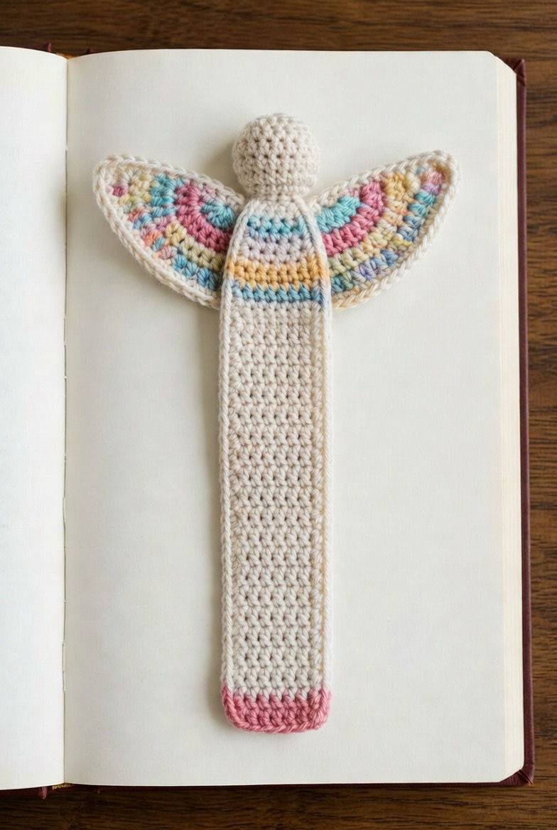 Merging the love of reading with the love of crochet, the angel bookmark is a functional piece of art. The “body” of the angel usually consists of a long, flat crocheted tail or a series of chain stitches that sits between the pages of a book. The head and wings peek out from the top, marking your place with celestial grace. This is a fantastic project for using variegated yarns, as the changing colors can create beautiful patterns across the wings without the need for constant yarn changes.