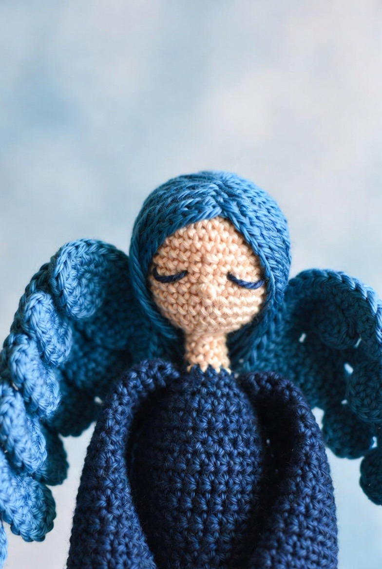 Blue is often associated with tranquility, healing, and the sky. A healing angel worked in various shades of cerulean, navy, and sky blue can be a thoughtful gesture for someone recovering from an illness or surgery. This project might feature “feathery” stitches like the loop stitch or the crocodile stitch on the wings to provide a more realistic and comforting texture. The deep blue tones provide a sense of calm and stability, making the finished piece a beautiful talisman for a bedside table.